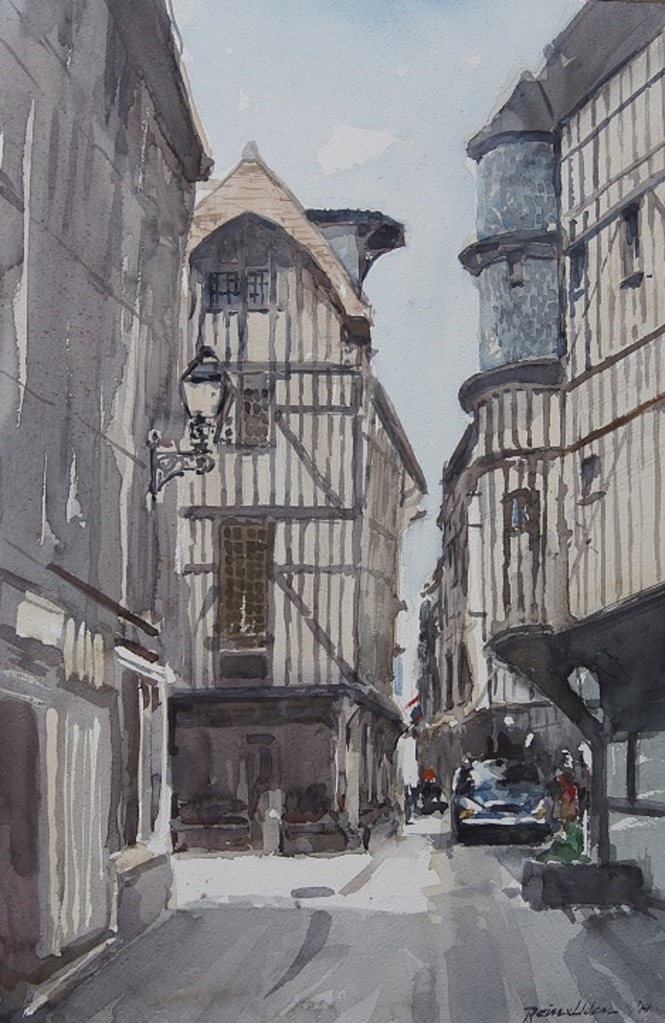 Aquarel Stadsgezicht Centrum Camino Vakwerkhuizen Troyes