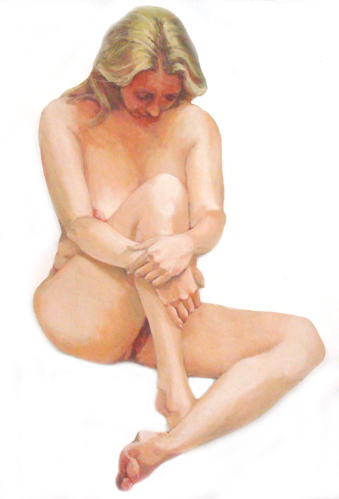dromende, naakt zittende vrouw.geschilderd op uitgesneden paneel. geschilderd na model