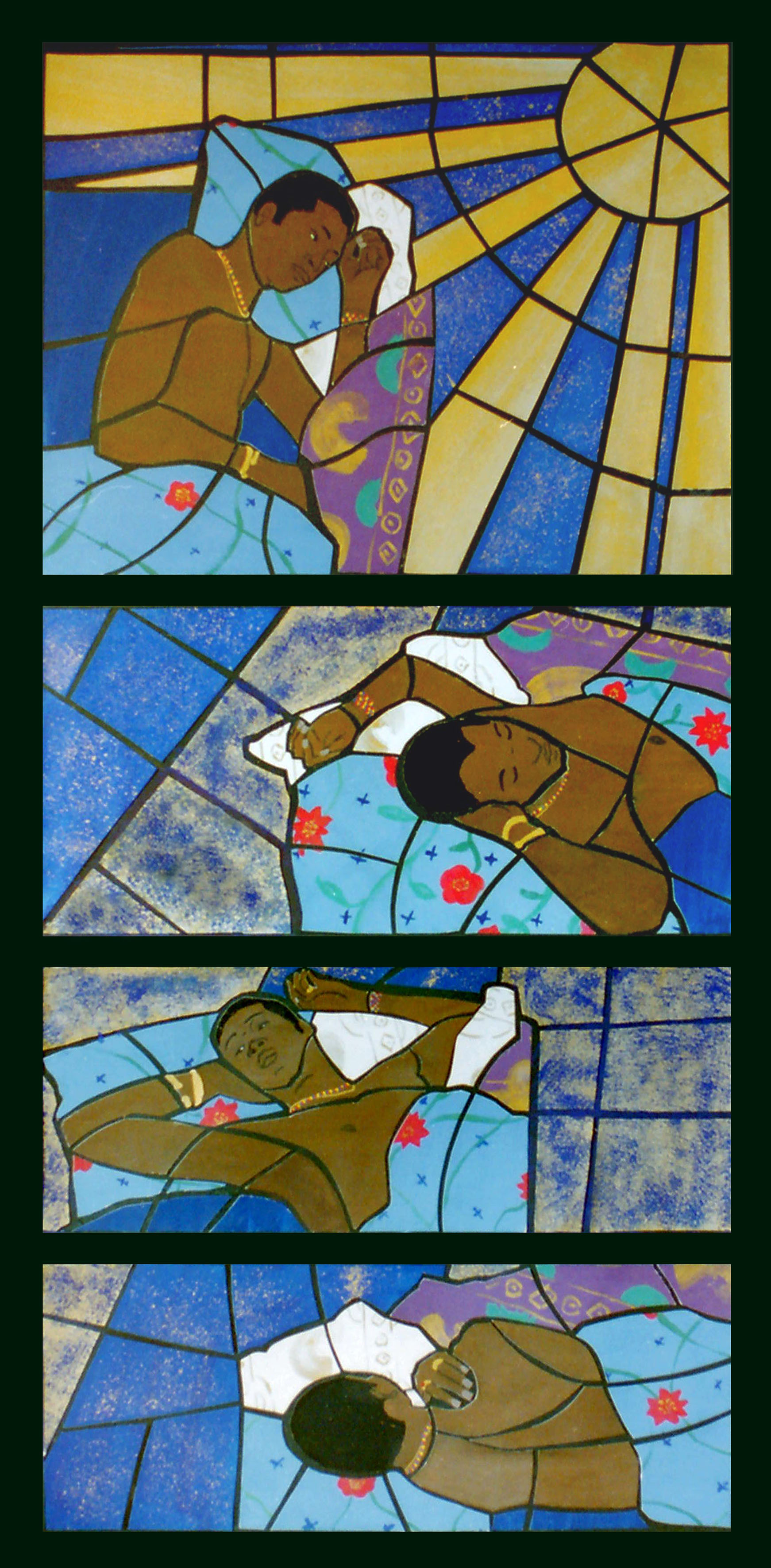 Uit een serie van 3, geinspireerd door glas-in-loodramen. Dit werk is ook als poster te koop.