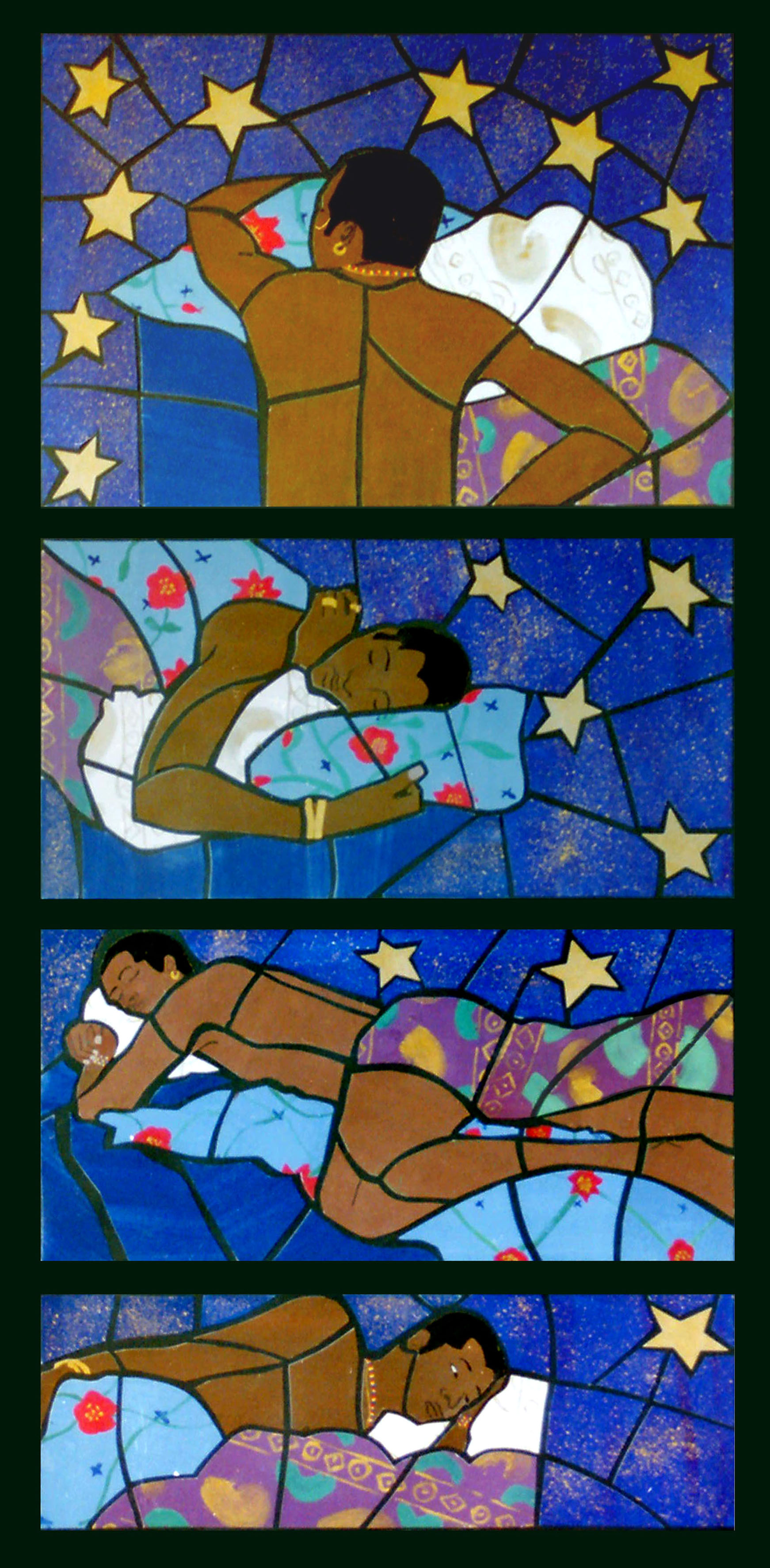 Man Zwarte Gouache Collage Sterren Glas-in-loodraam