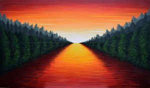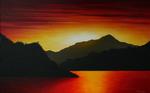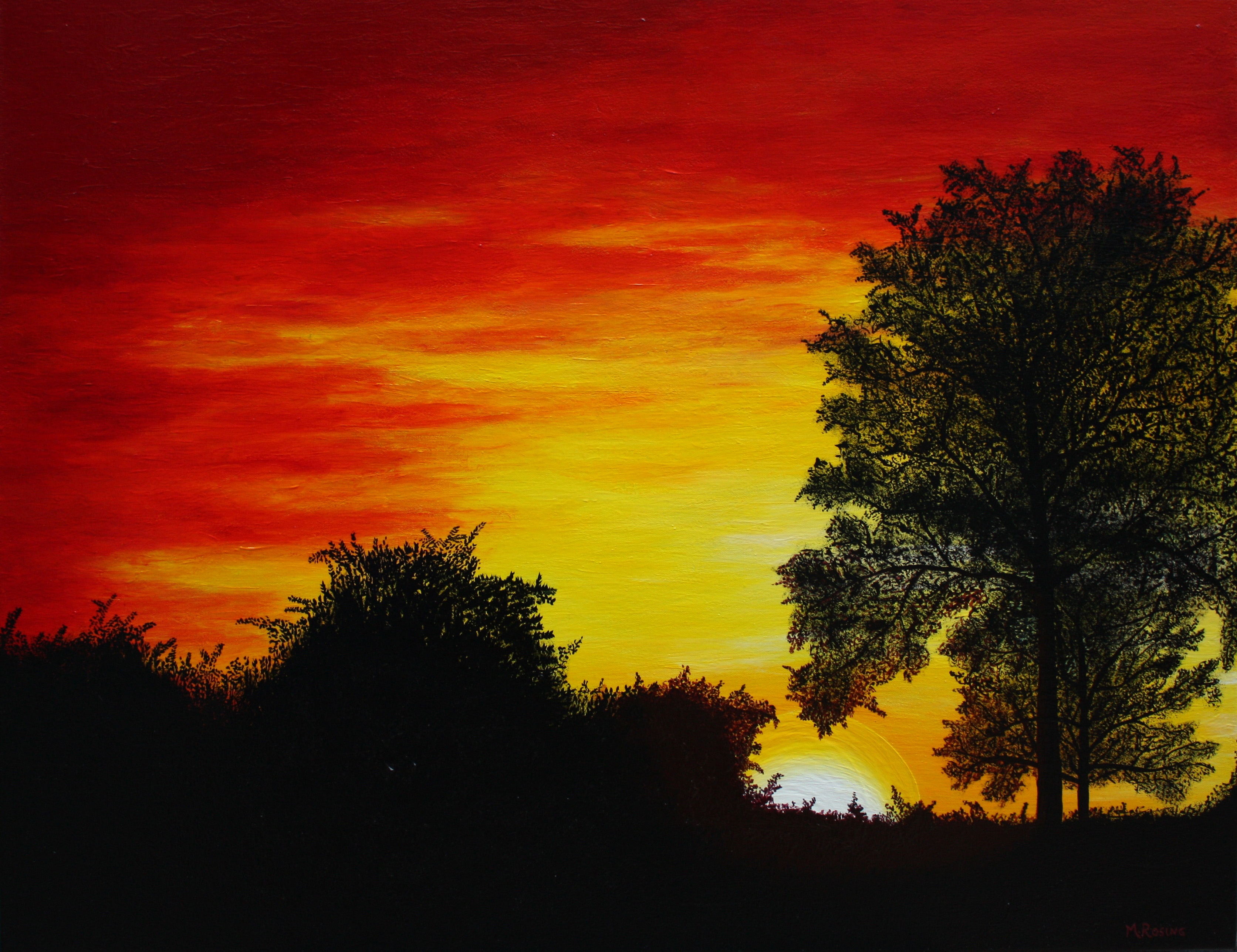 Zon Rood Oranje Geel Zwart Landschap Acryl Yellow Sunset Zonsondergang Bergen Bomen Red Lucht Bos Ondergaande Boom Black Sun Landscape Romantisch Tree Berg Orange Marieke