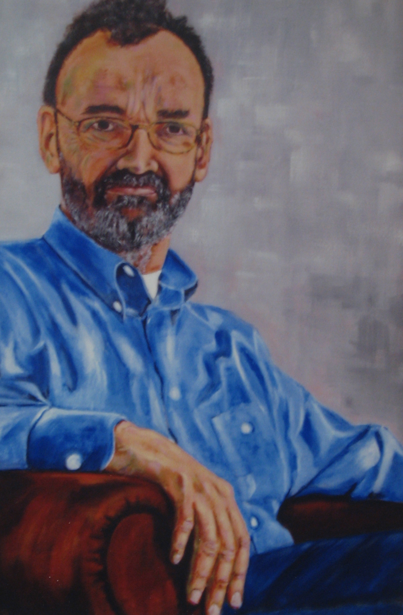 Man Zittend Blauw Bruin Baard Priemend