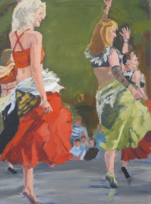 Dansen op het plein. afmeting 60 x 80 cm olieverf op doek