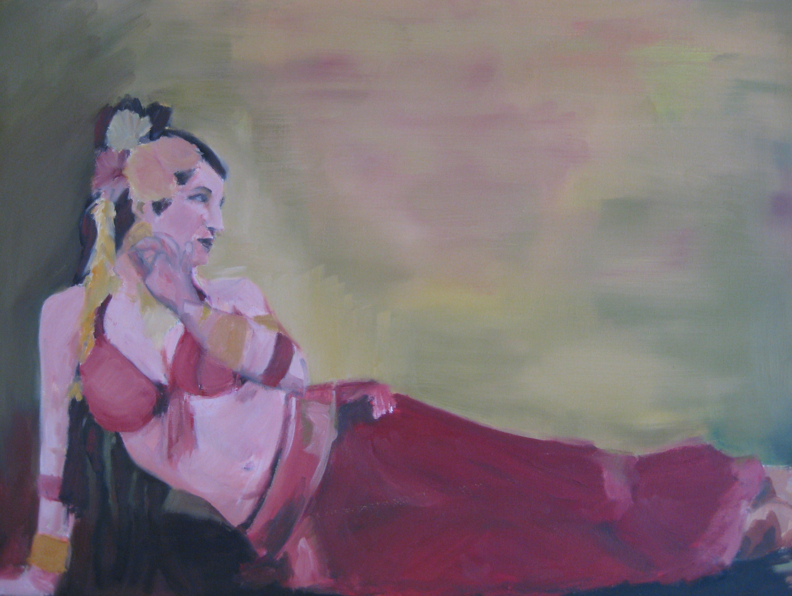 Vele van mijn schilderijen hebben als thema vrouwen, dans, het Midden Oosten. Het Midden Oosten heeft een grote aantrekkingskracht op mij . Het weet mij te betoveren met zijn heerlijke geuren en kleuren, zijn élégance, zijn mooie gewaden, muziek en dans. Ik houd van kleuren. In mijn werk zijn kleur en sfeer dan ook heel belangrijk. Ik probeer altijd om die in mijn schilderijen voelbaar te maken. Soms voel ik mij een oriëntalist