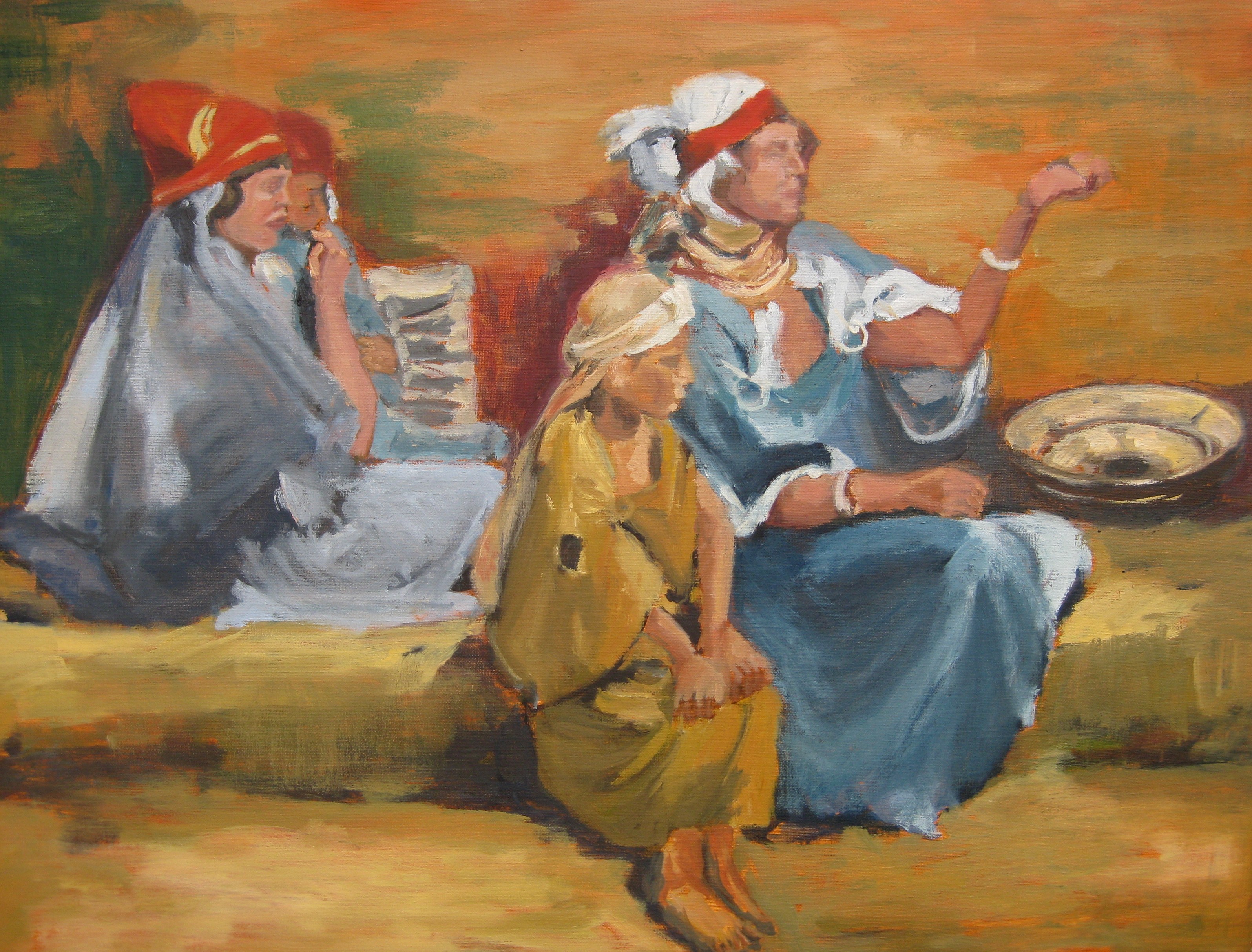 Bedoeinenfamilie afmeting 70 x 90 cm olieverf op doek