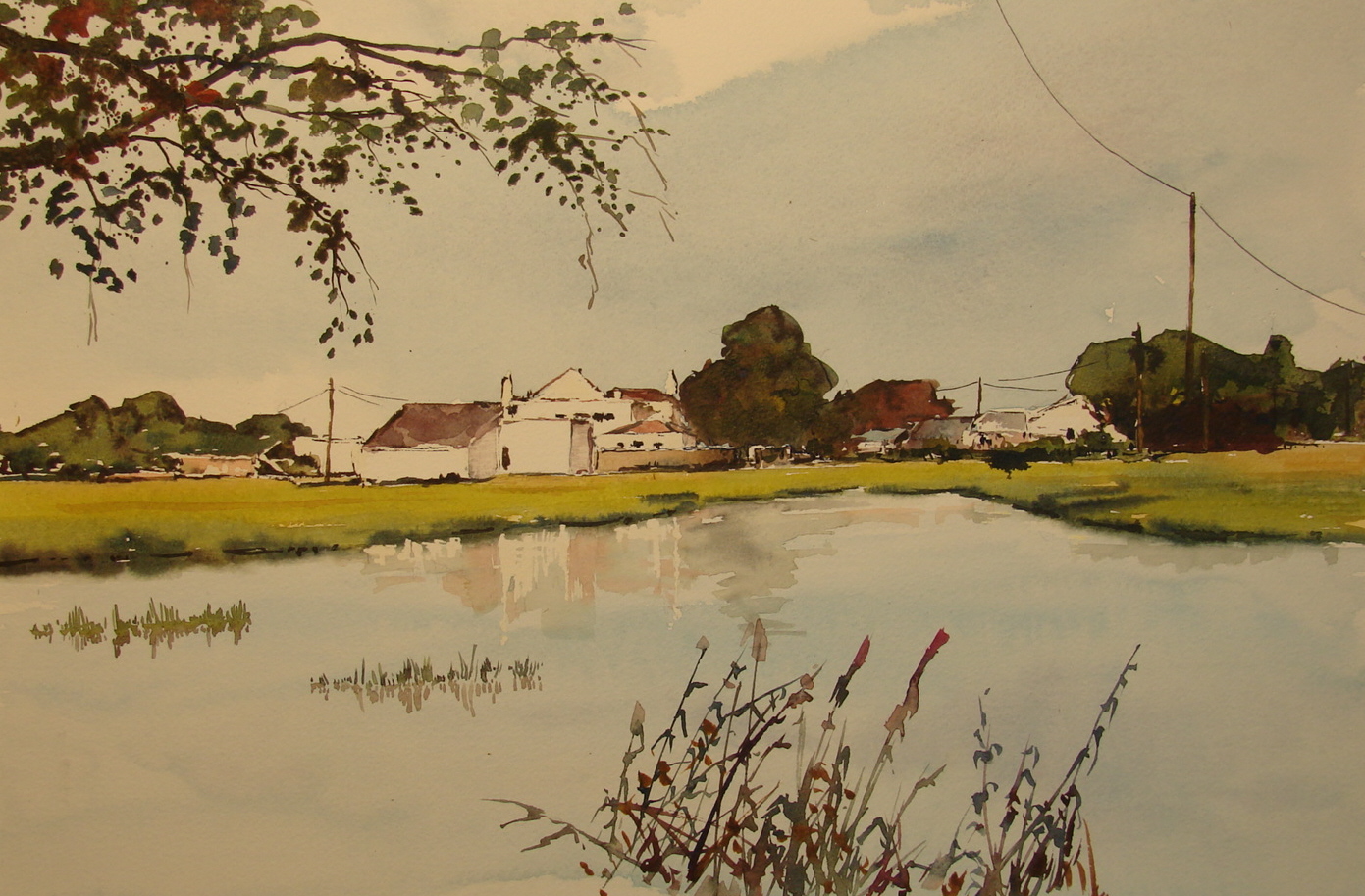 Onderweg naar Moncarapacho, hoog water na de voorjaarsregens van 2010. Algarve, Ria Formosa - Portugal. Te zien in het apartement van de schilder in Tavira.