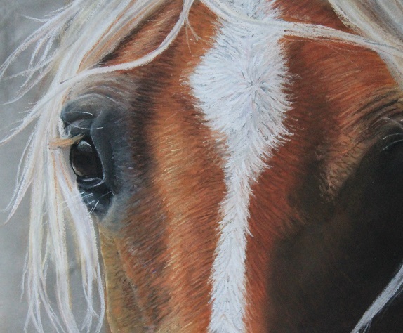 Mijn eerste werk in pastel, een gedeeltelijk portret van een haflinger.