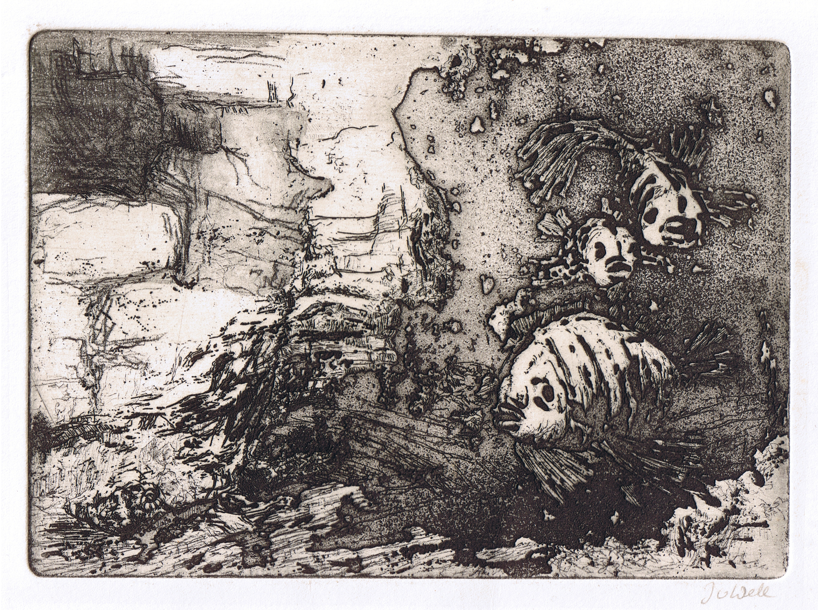 Wit Zwart Vis Grot Ets