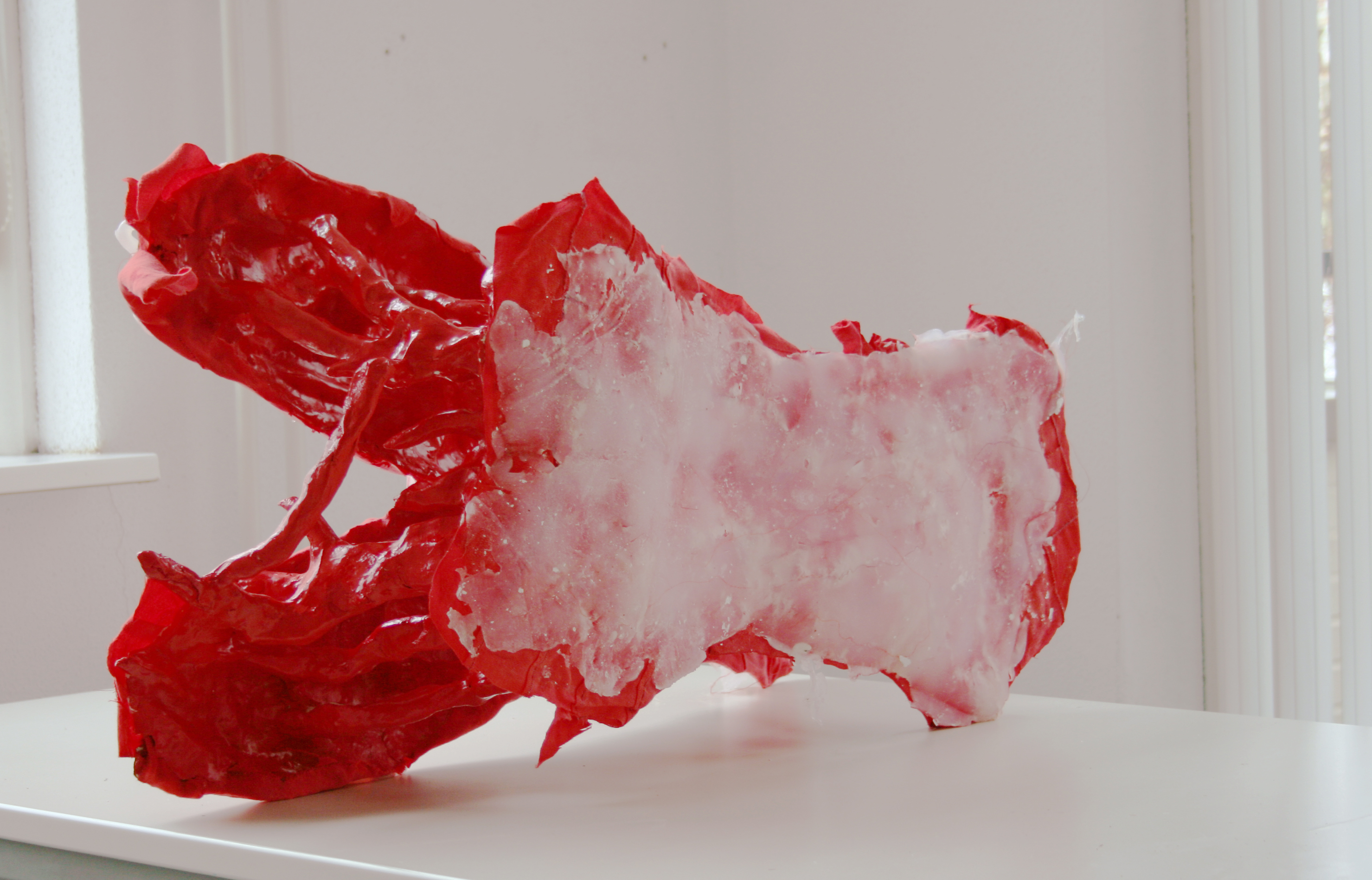 Dit werk is een energiek verlangen van binnen en een druk die het van buiten tegenhoud. Het is een lichaam bestaande uit twee krachten die tegen elkaar op werken. Het werk bestaat uit stof, klei, siliconen kit en lak verf