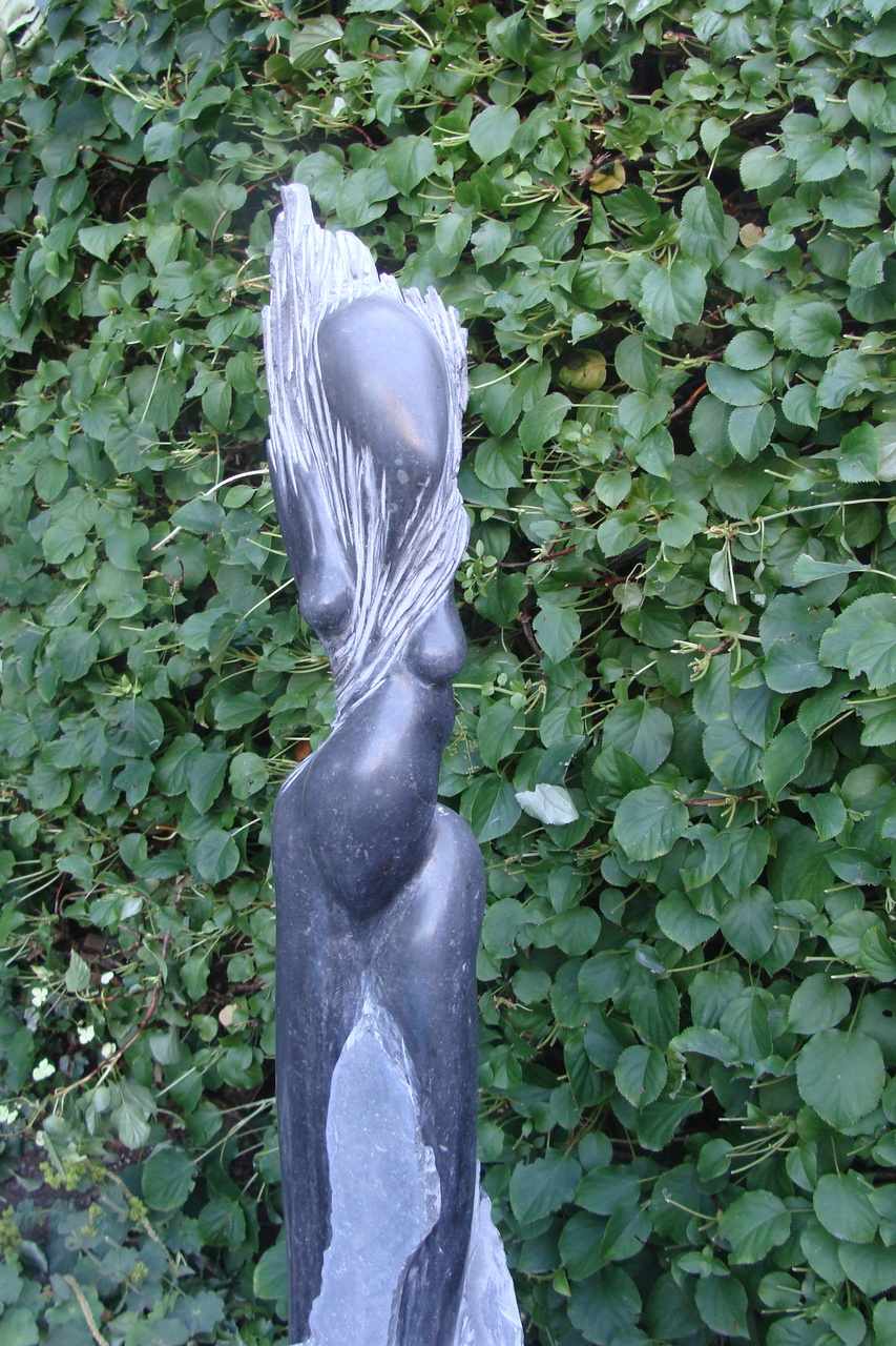 Een beeld in Arduin. Een vrouw verbeeld met heimwee. Is een romantische vertaling van het thema.
