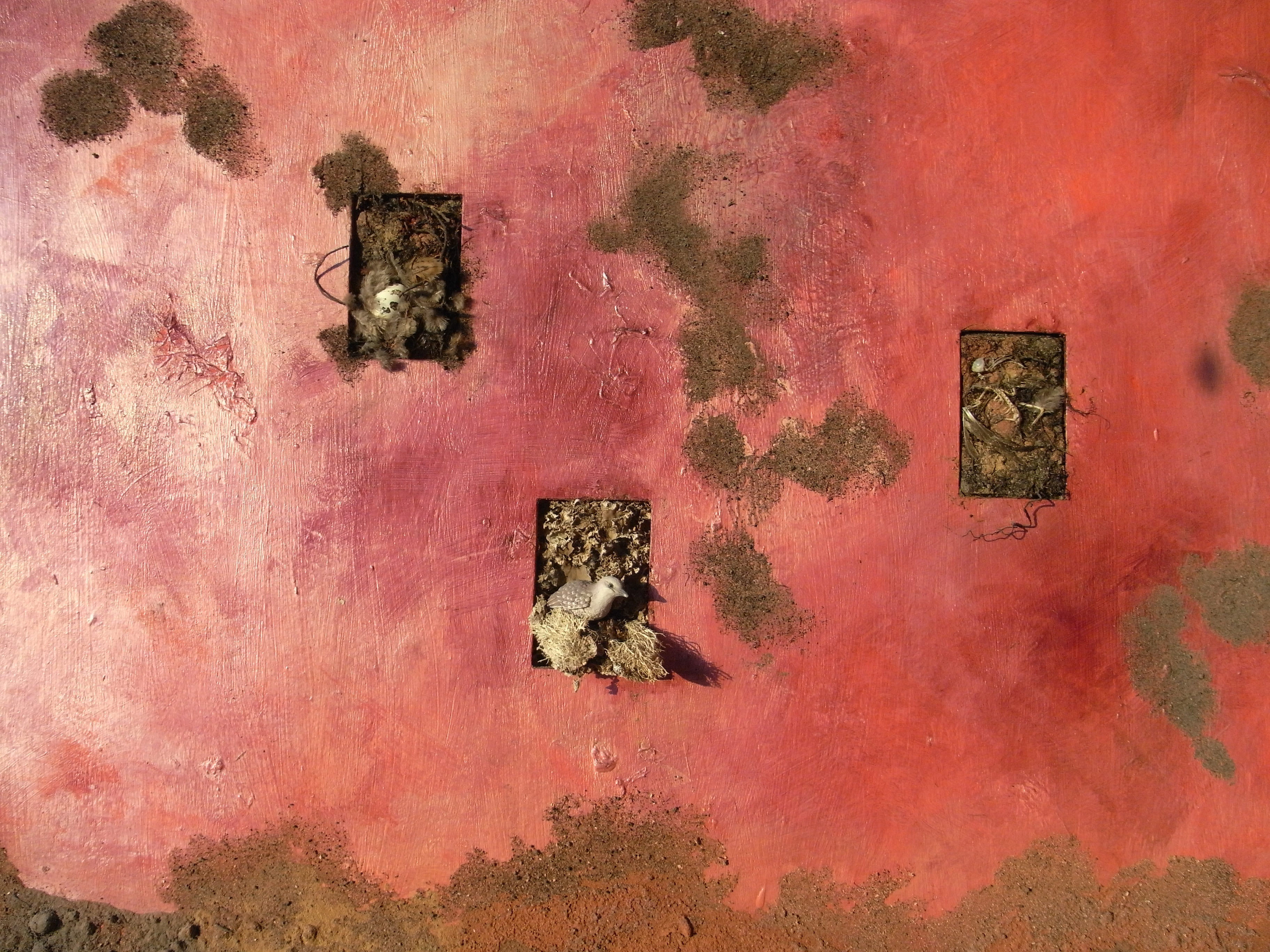 Rood Vogel Natuur Collage Stilte Rust Assemblage Levenscyclus Wandobject Sjamanisme Assembly Natuurbeleving Stressvrij