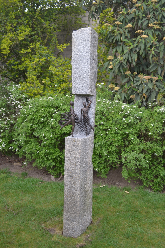Betekenisvolle sculpturen in brons, steen of hout met een eigen identiteit, een weerspiegeling van het dynamische proces, schoonheid en strijd. Groot staand werk of kleiner voor tuin of interieur.