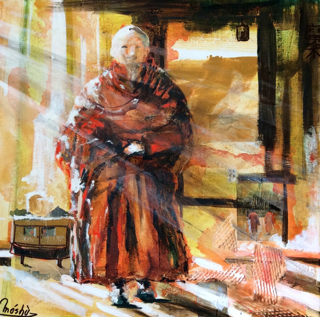 Oranje Spiritueel Bruin Mixed Media Canvas Vierkant Mens Verhalend Brown Roest Linnen People Square Monnik Monk