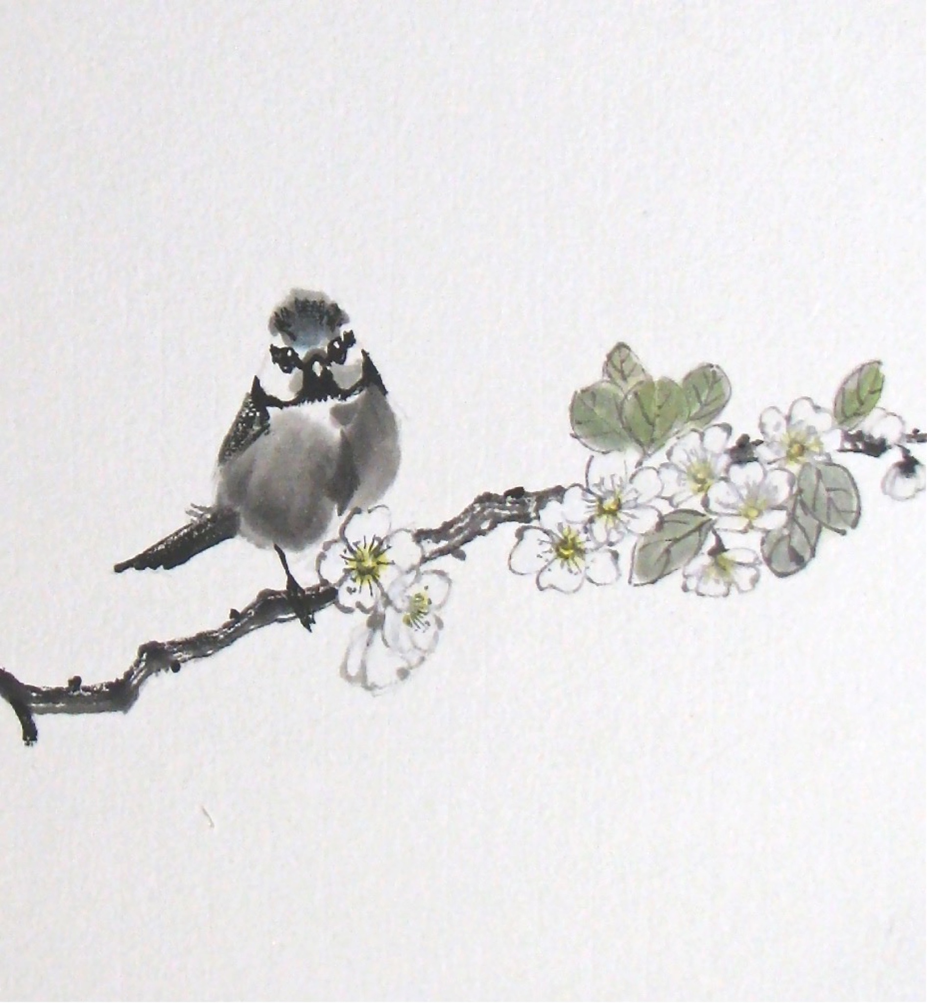 Vogel Dier Natuur Painting Inkt Life Bird Bloesem Wild Zen Schilderen Rijstpapier Blossom Sumi-e