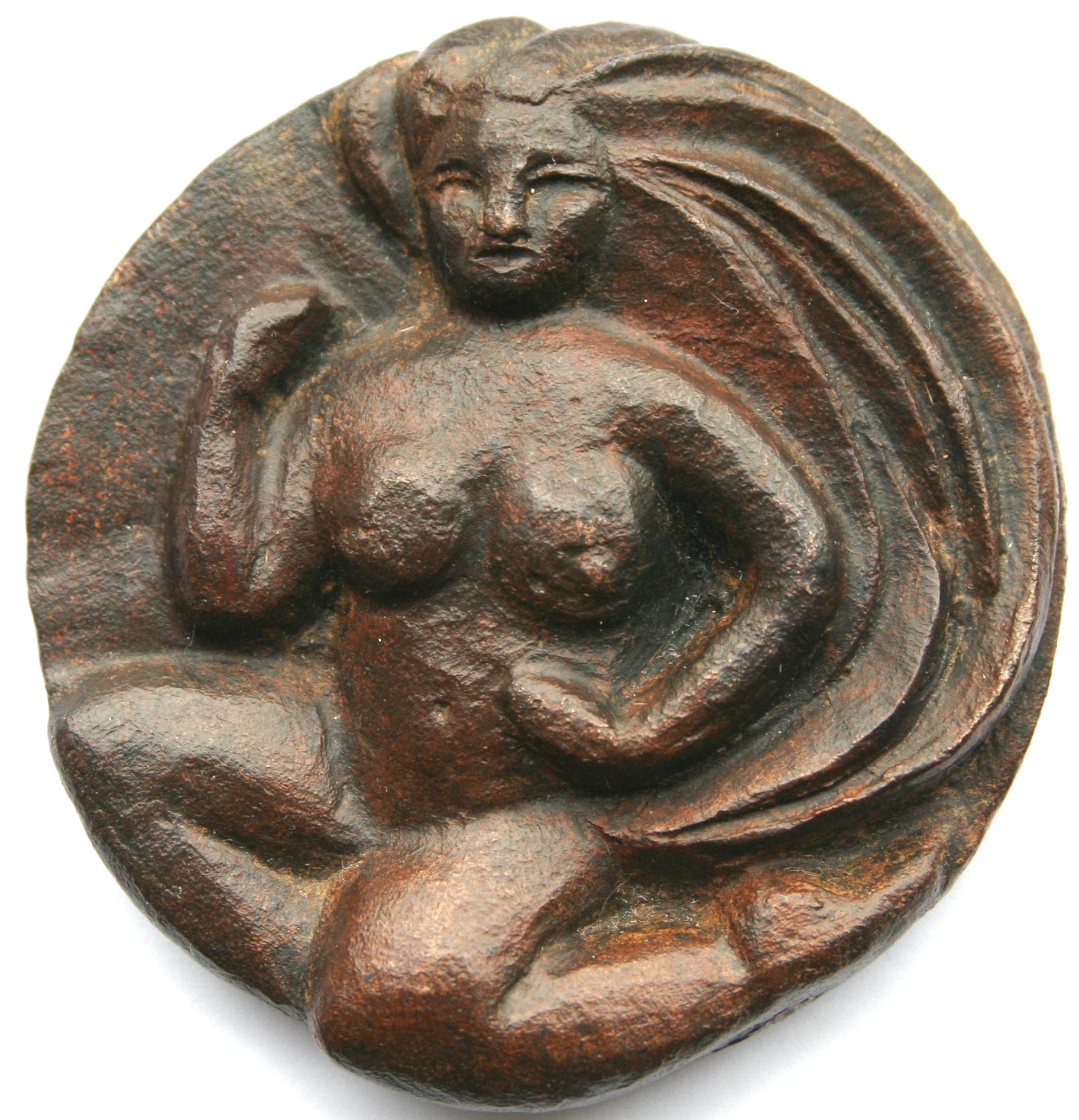 Deze tweezijdige bronzen gegoten penning heeft een diameter van 75mm.