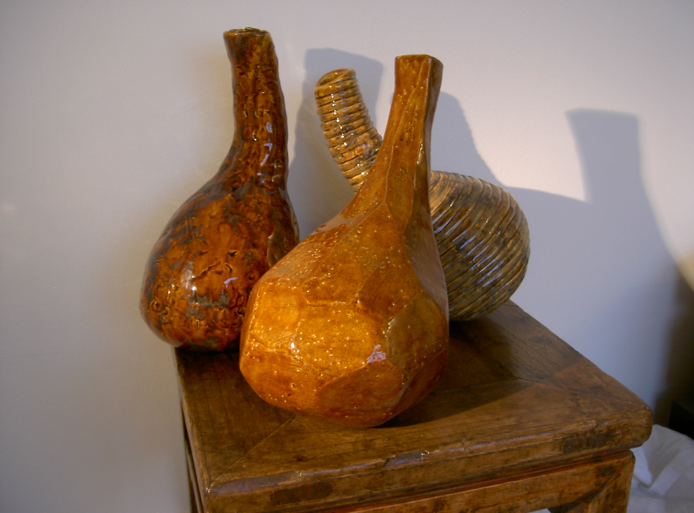 Deze 3 vazen zijn met verschillende technieken gemaakt, maar vormen door de vorm en kleur een serie die bij elkaar hoort (per 3 te koop)