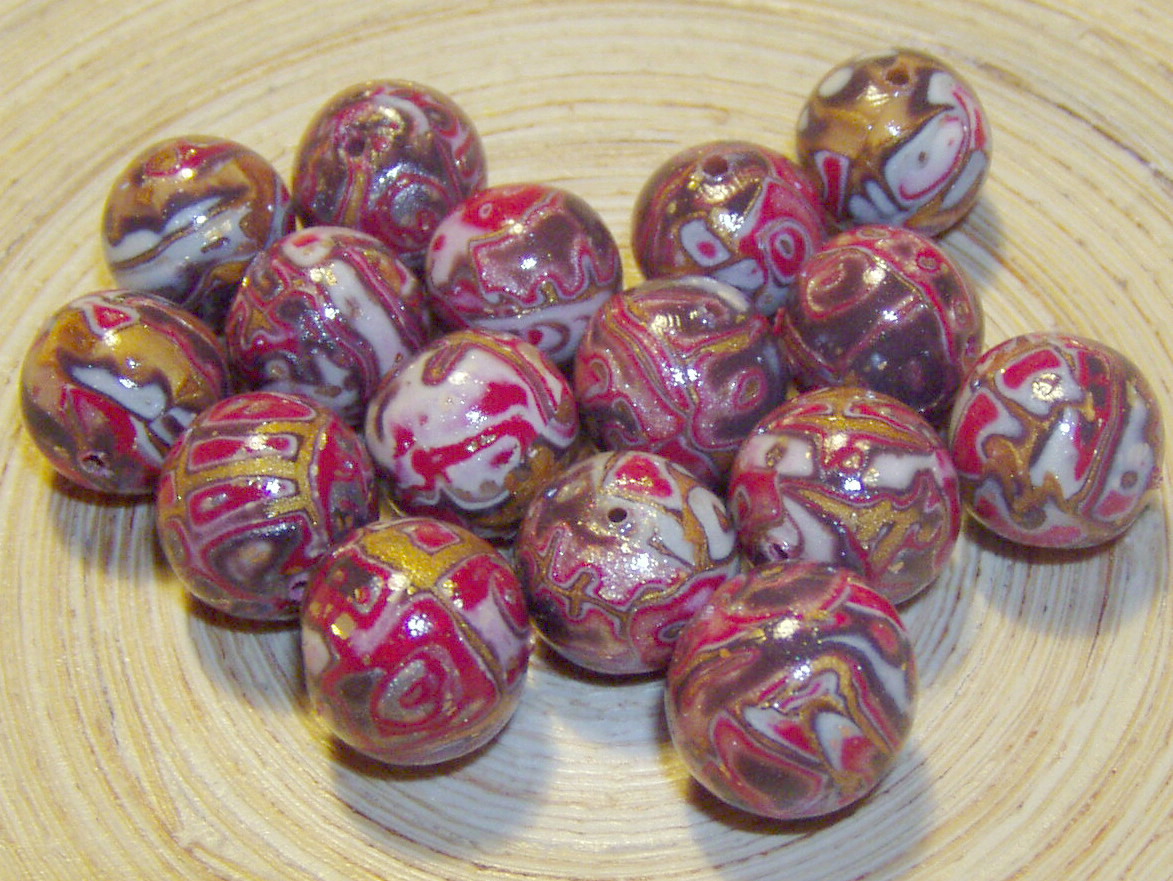 Set kralen in Mokume cane techniek. Ronde kralen set van 16 stuks.