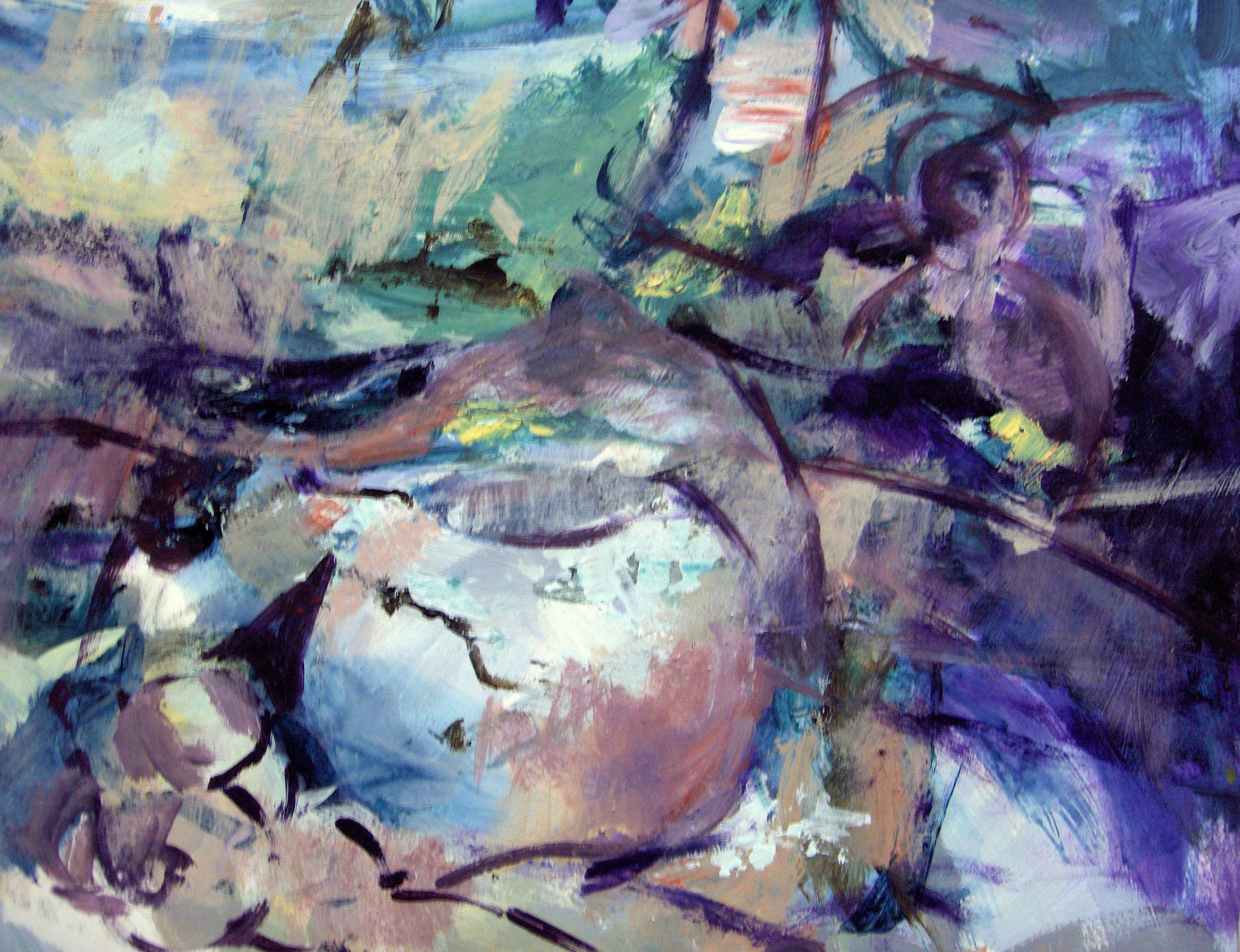 Studie naar de abstractie van een stilleven in acrylverf. Zoeken naar de harmonie tussen lijn en vlak.