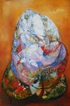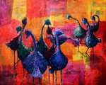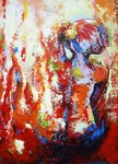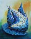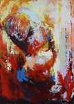 Karen Pelckmans schildert vanuit kleuren en raakt geinspireerd door visuele indrukken uit de directe omgeving. Soms hanteert ze daarbij foto's die ze eerst maakt van de voorstelling om een basis te hebben. Die basis werkt ze dan in een aantal stappen verder uit.
