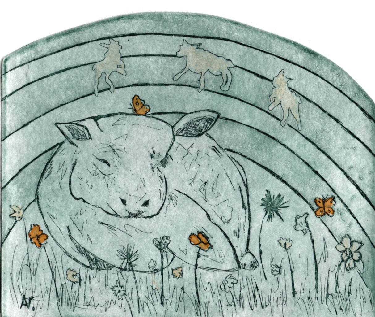 Eenvoud,symboliek en grafische elementen. Etsen, Pastel en Acryl met frisse en kleurrijke voorstellingen.