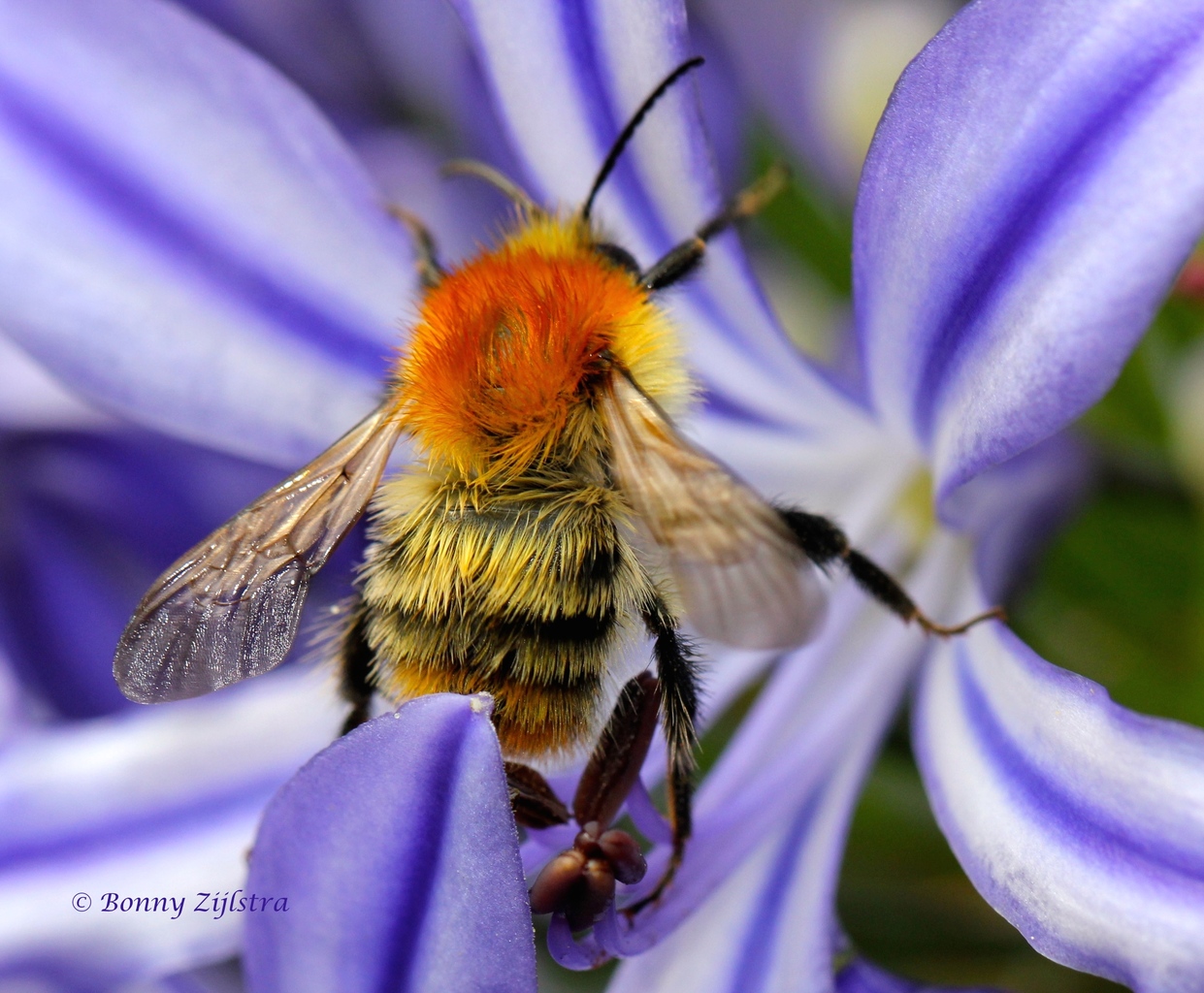 Macro foto van een Agapantus met een Weide Hommel