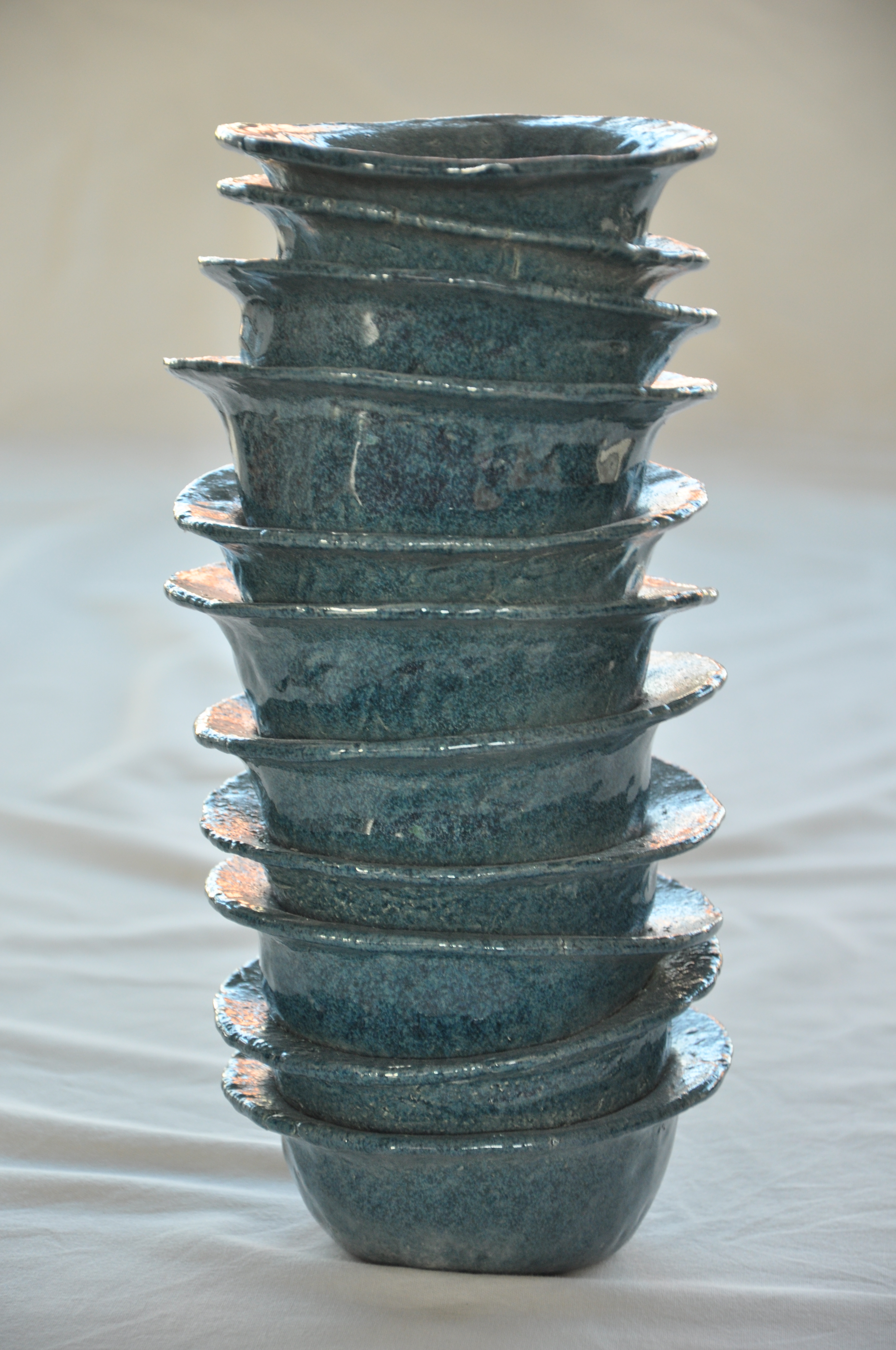 Deze vaas lijkt aan de buitenkant een toren van gestapelde bakjes, maar is in werkelijkheid een vaas van binnen.