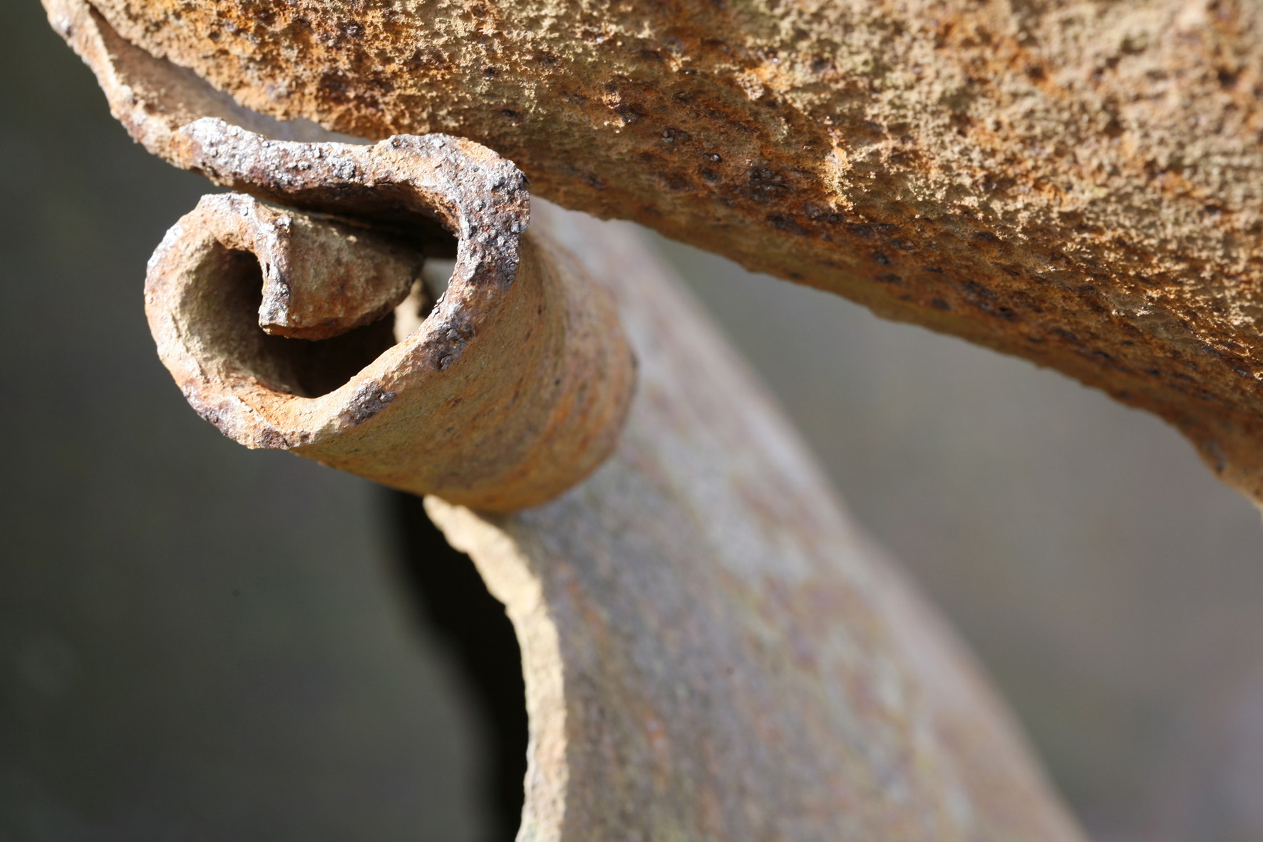 scherpte en onscherpte en de warme kleuren van het roestend ijzer geven de foto een rustige sfeer
