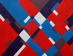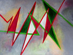Abstract studie 6. Compositie op basis van lijnen en drie vlakken. Gemengde technieken (acryl en olie pastel). Opdracht cursus R. van Vliet.