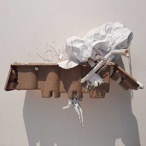 Papier en karton als (ver)beeldend element en drager van het werk tegelijkertijd. Lange tijd in een witte vorm gegoten, sinds 2017 in het zwart gestoken. Tessa Lieffering(Nijmegen 1970) In 1994 afgestudeerd(tekenen en schilderen) aan de AKI te Enschede.