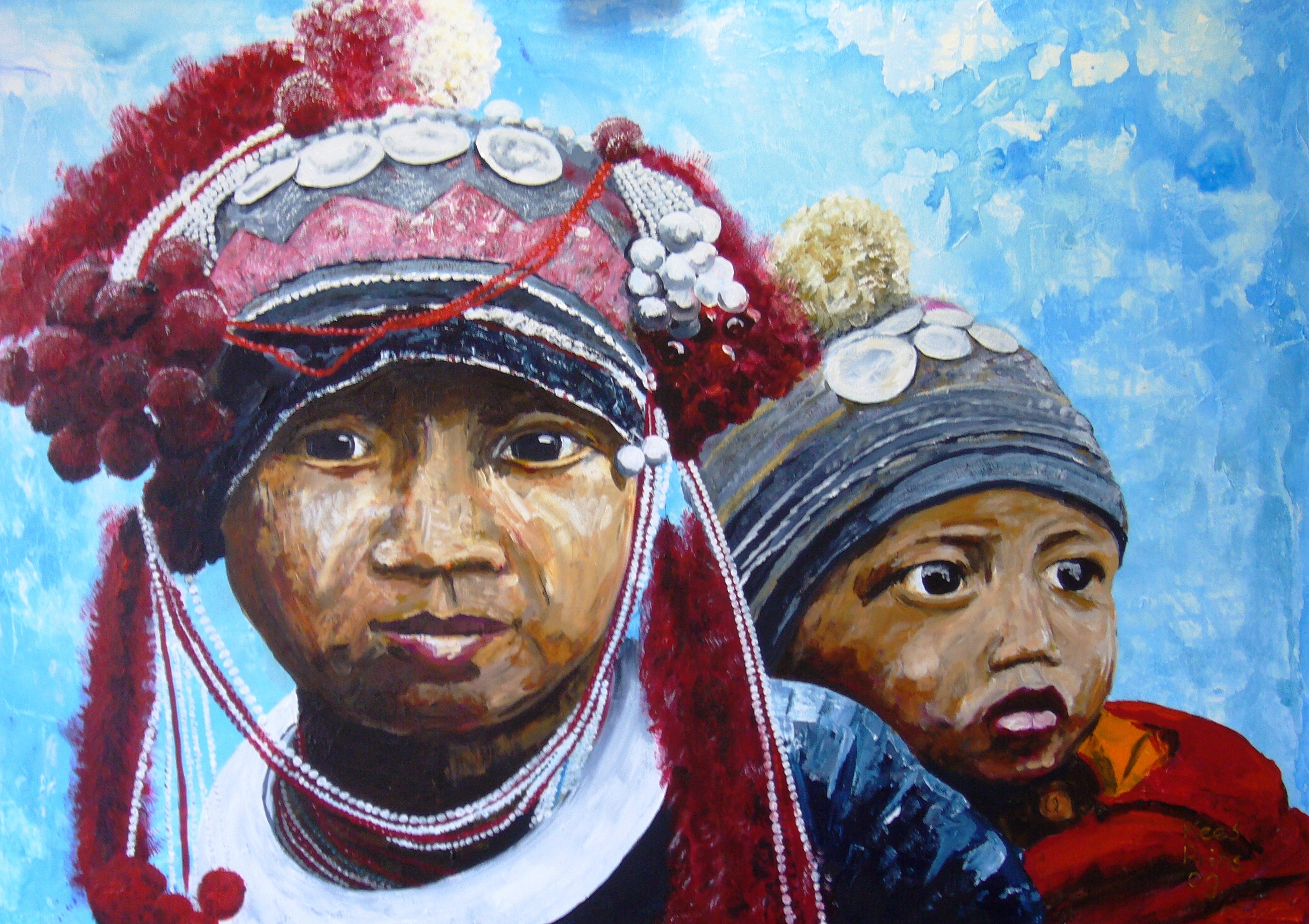 In 1978 heb ik met een vriend in de gouden driehoek met een gids drie dagen door de jungle gesjouwd. Dat was toen nog uniek. Toen ik 5 jaar later daar terug kwam met mijn vriendin leek het wel Volendam. In ieder geval toen de dia gemaakt waar dit schilderij op is geinspireerd.