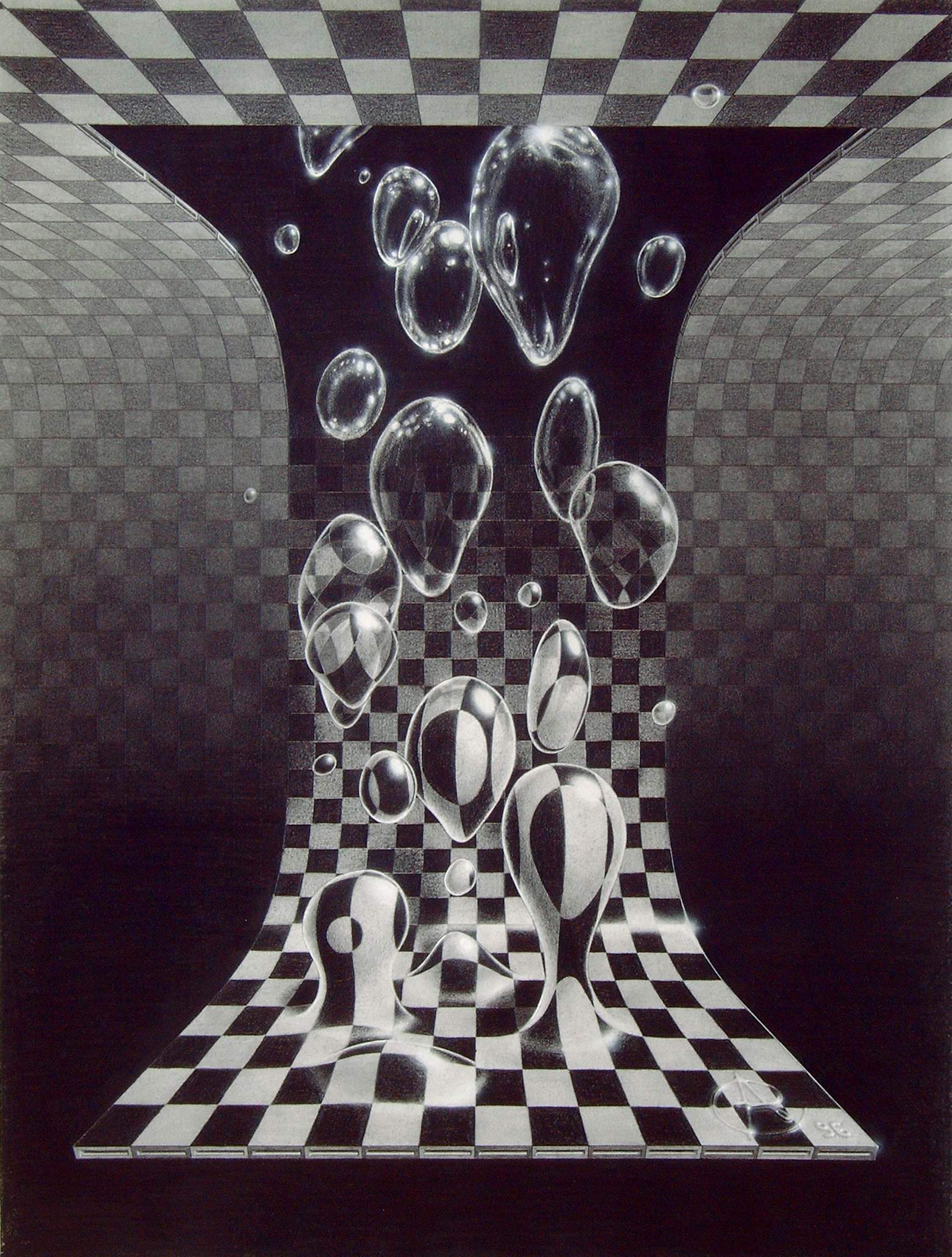 Potlood Zwartwit Transformatie Overgang Escher Bellen Patroon Vrijheid