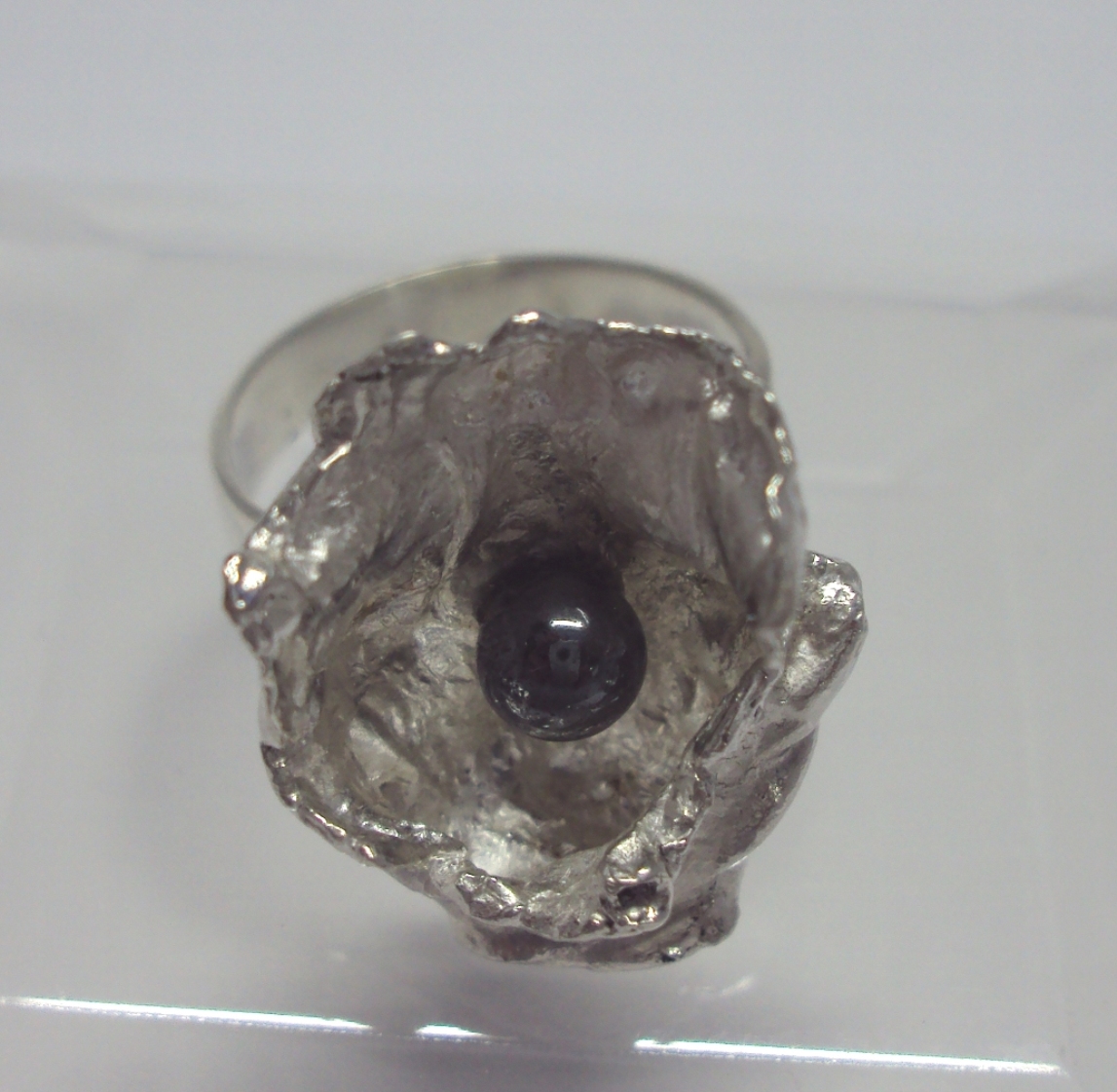 Ring uniek ontwerp en uitvoering in AG925 zilver met zwarte zoetwater parel.