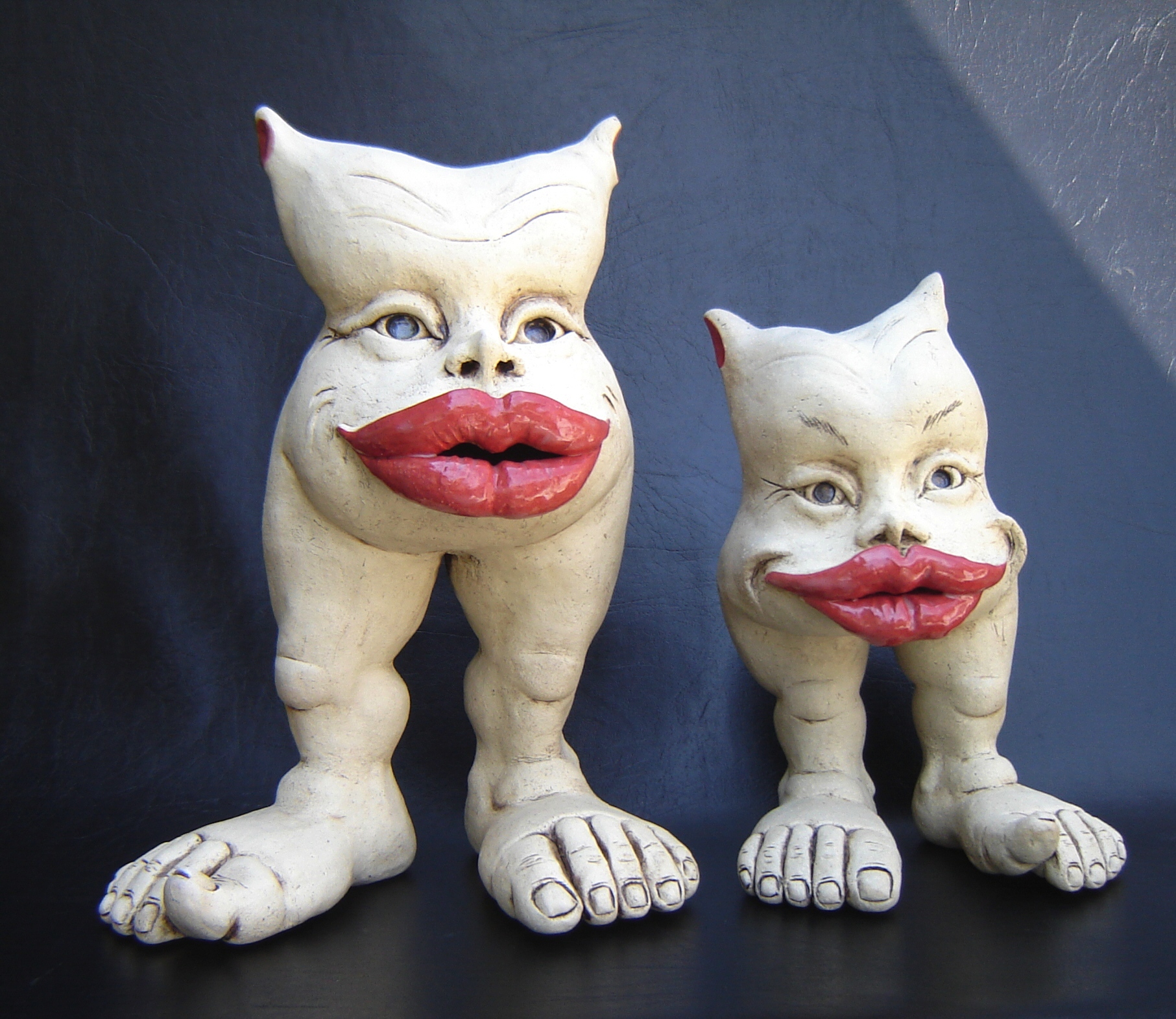 Kopvoeter Mens Figuur Beige Rood Lippen Keramiek Beeld