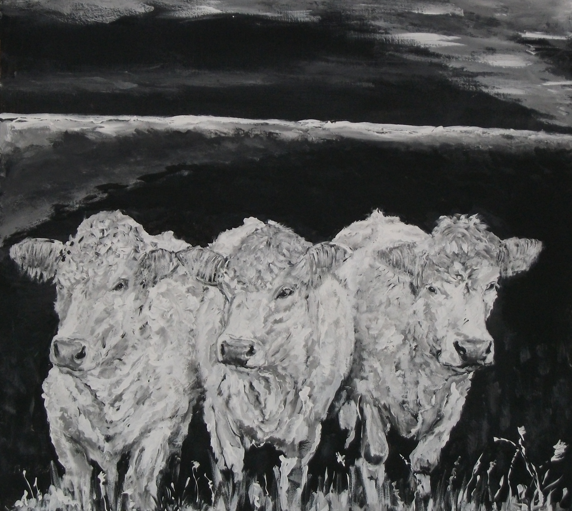 Schilderij Koe Painting Koeien Cow Cows Zwartwit