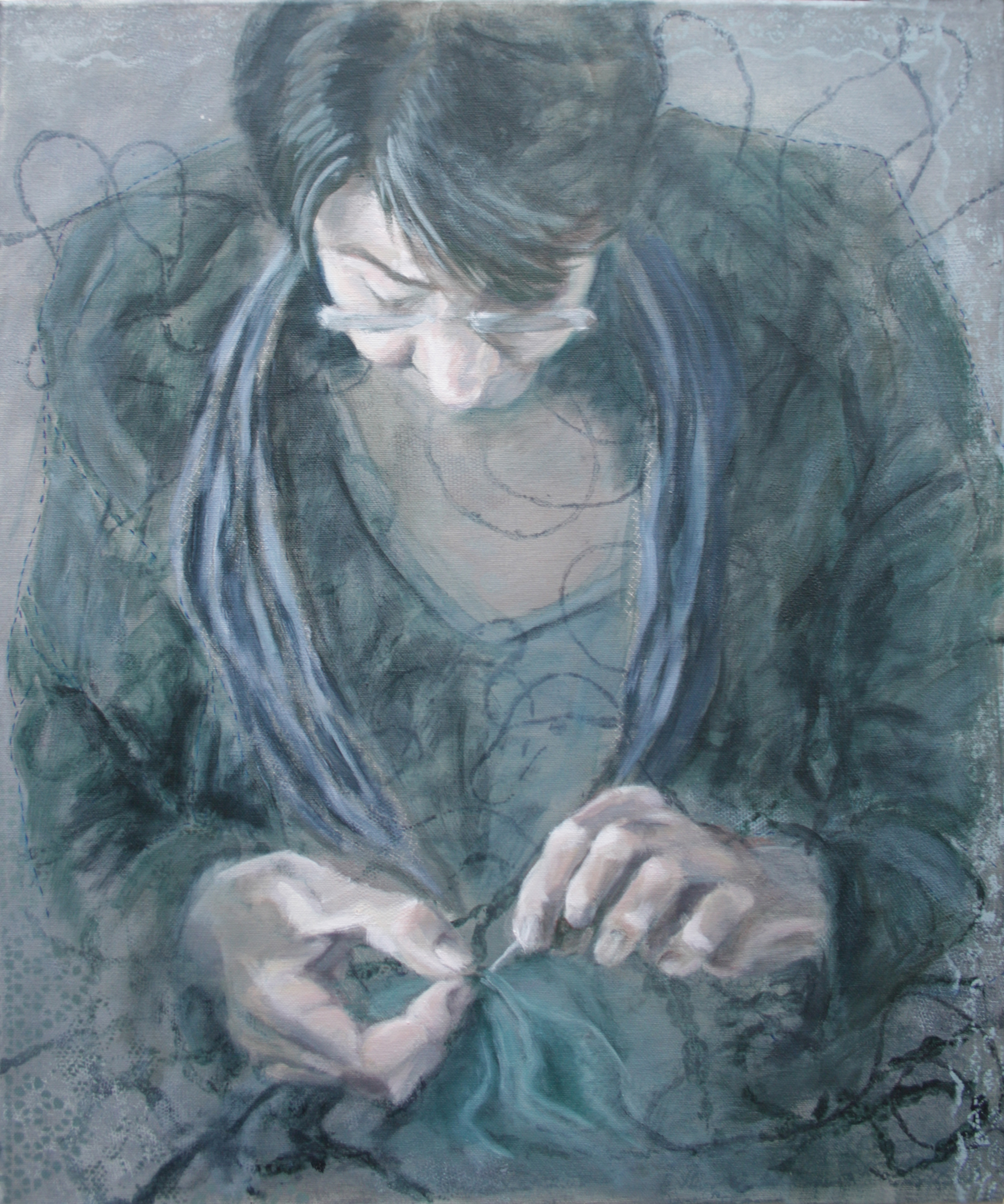 Blauw Groen Handen Opengewerkt Borduren Handwerk Ambacht