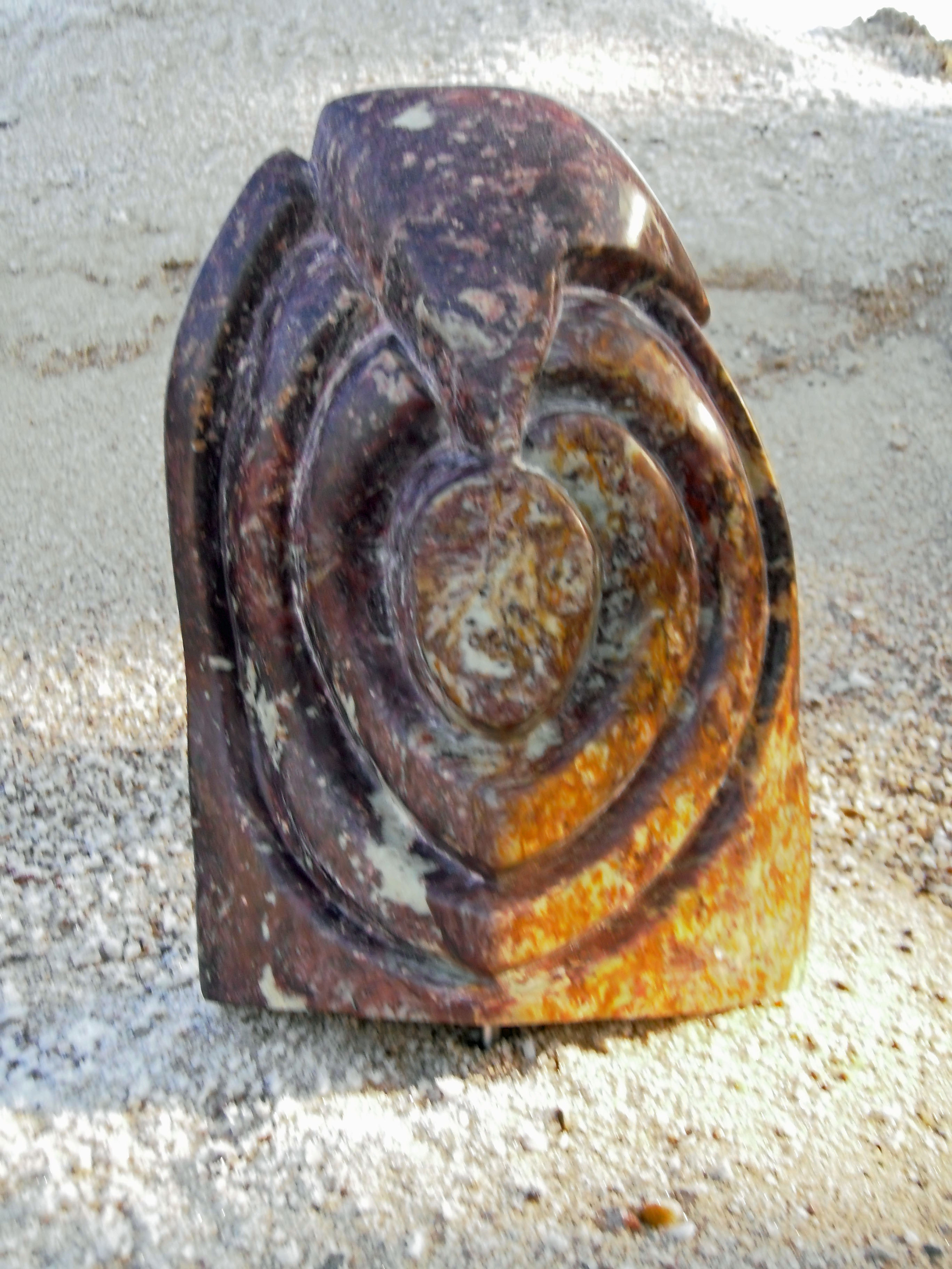 Cobalt steen (serpentijn soort), voor binnen of buiten. Prijs excl. sokkel. Paars doorregen met goud en mint, Vind je weg door het labyrint.