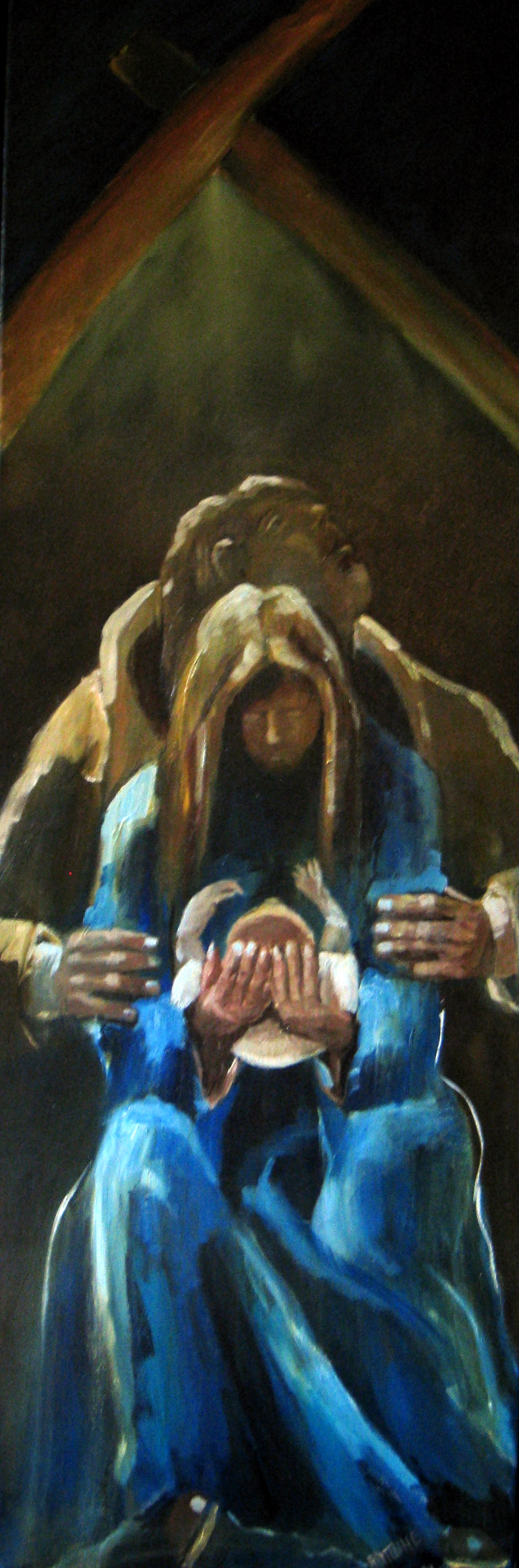 Religieus Kerkst Geboorte Stal Olieverf Blauw