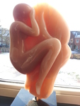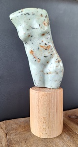 Ronde, aaibare vormen voor bijvoorbeeld torsen hebben haar voorkeur. Niets of niemand is compleet, zo ook haar beelden. Wat er niet is in de steen blijft onbekend en onbewerkt.