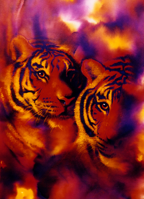 Aquarel Tijger Tijgers Kleur Mixedmedia