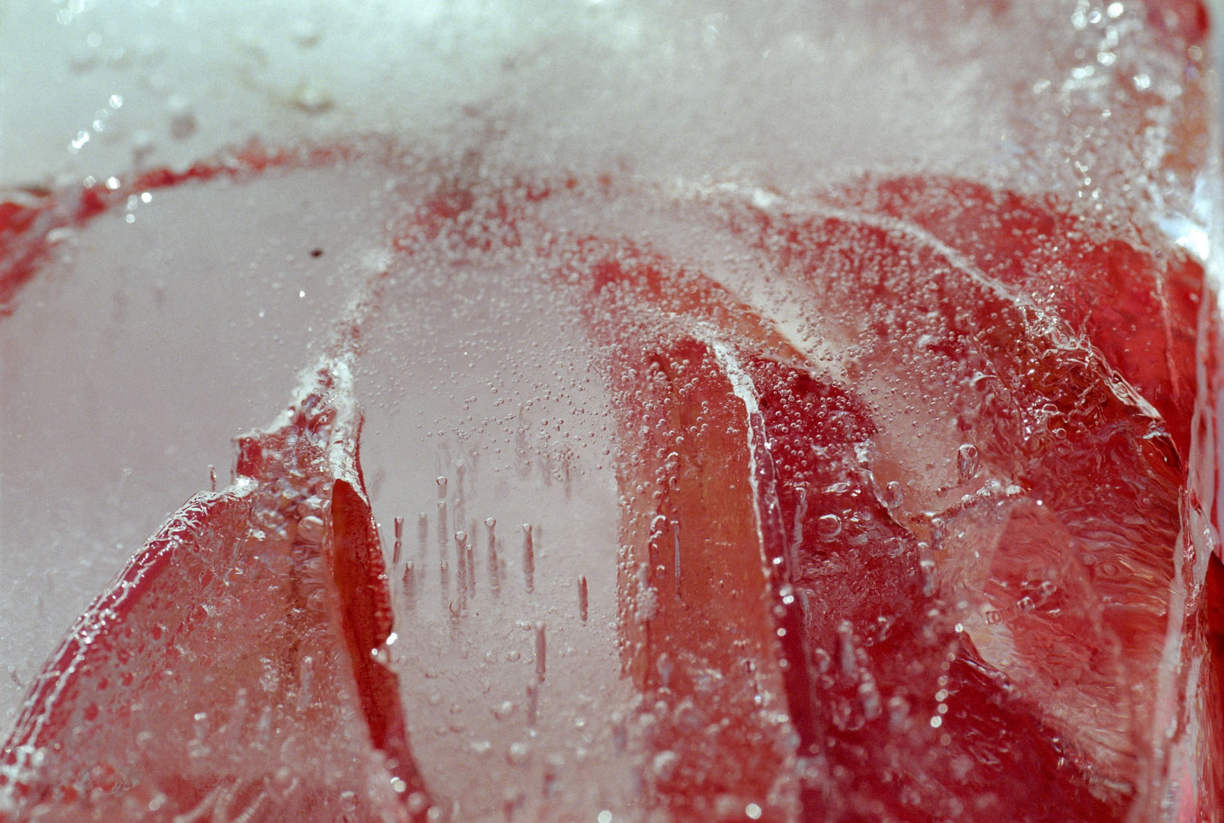 Frozen World Wijnblad Rood Ingevroren Luchtbellen Ijs