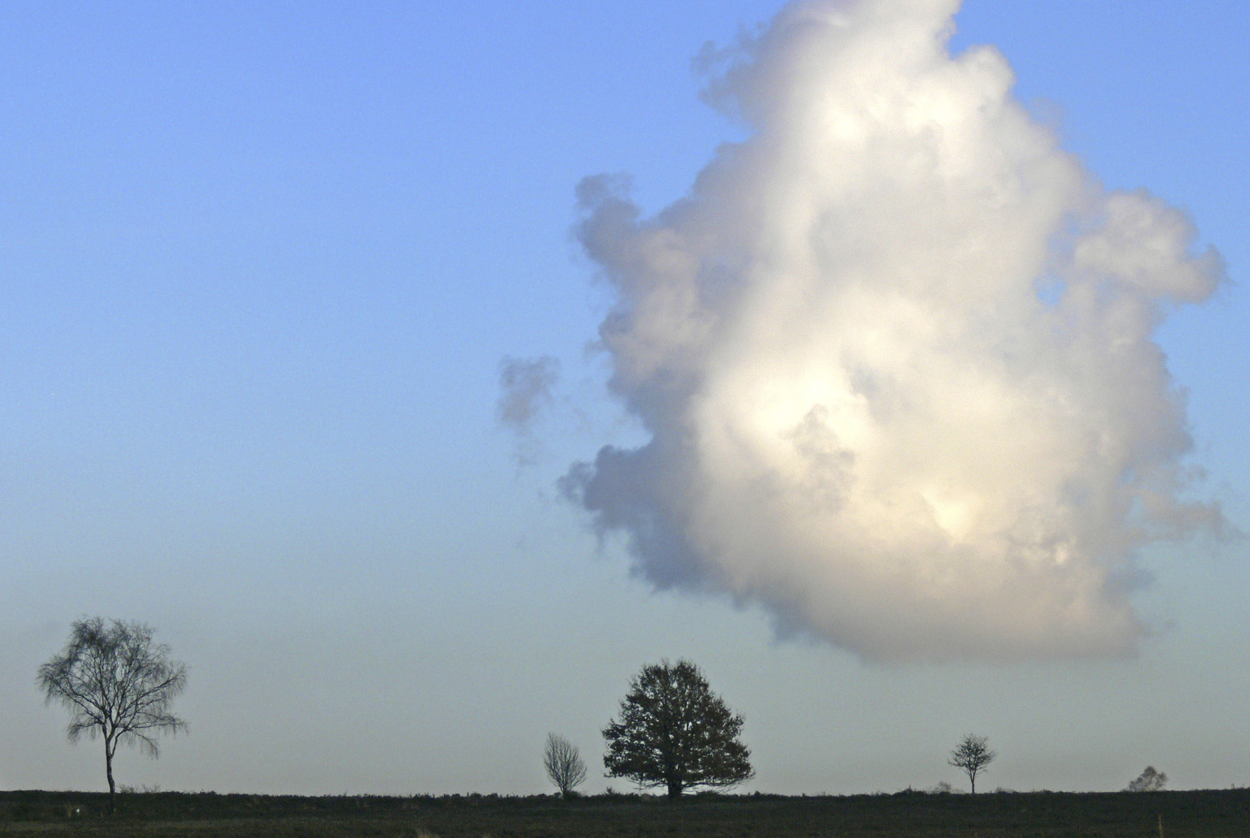 Traag zweeft de winterse witte wolk boven de horizon.