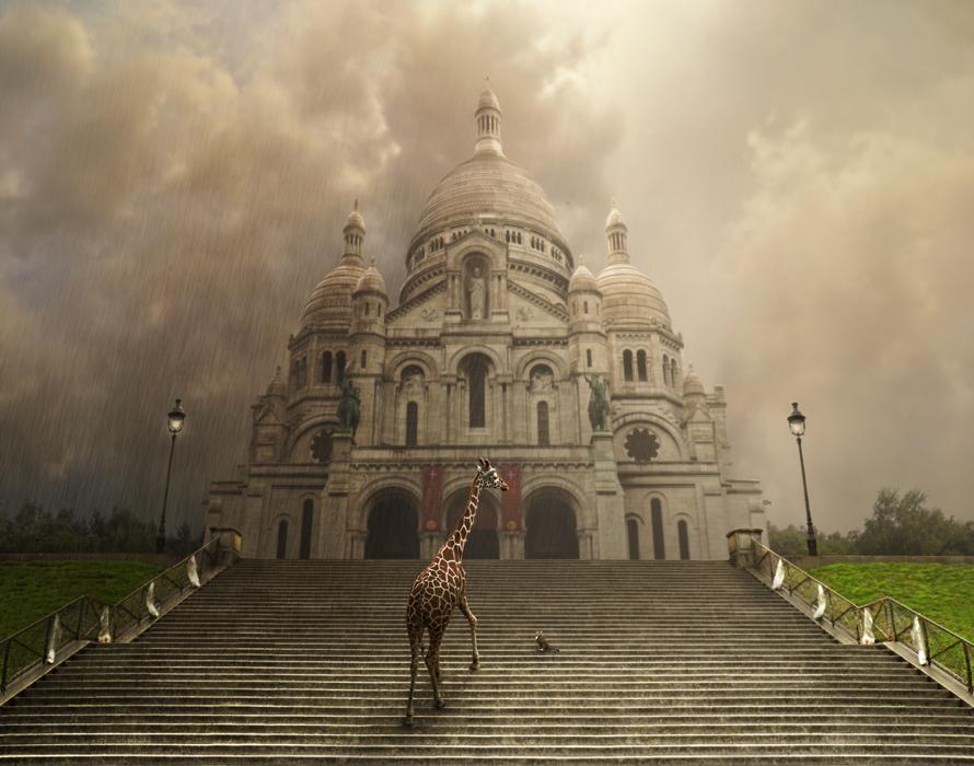Giraf Poes Trap Kerk Parijs Regen