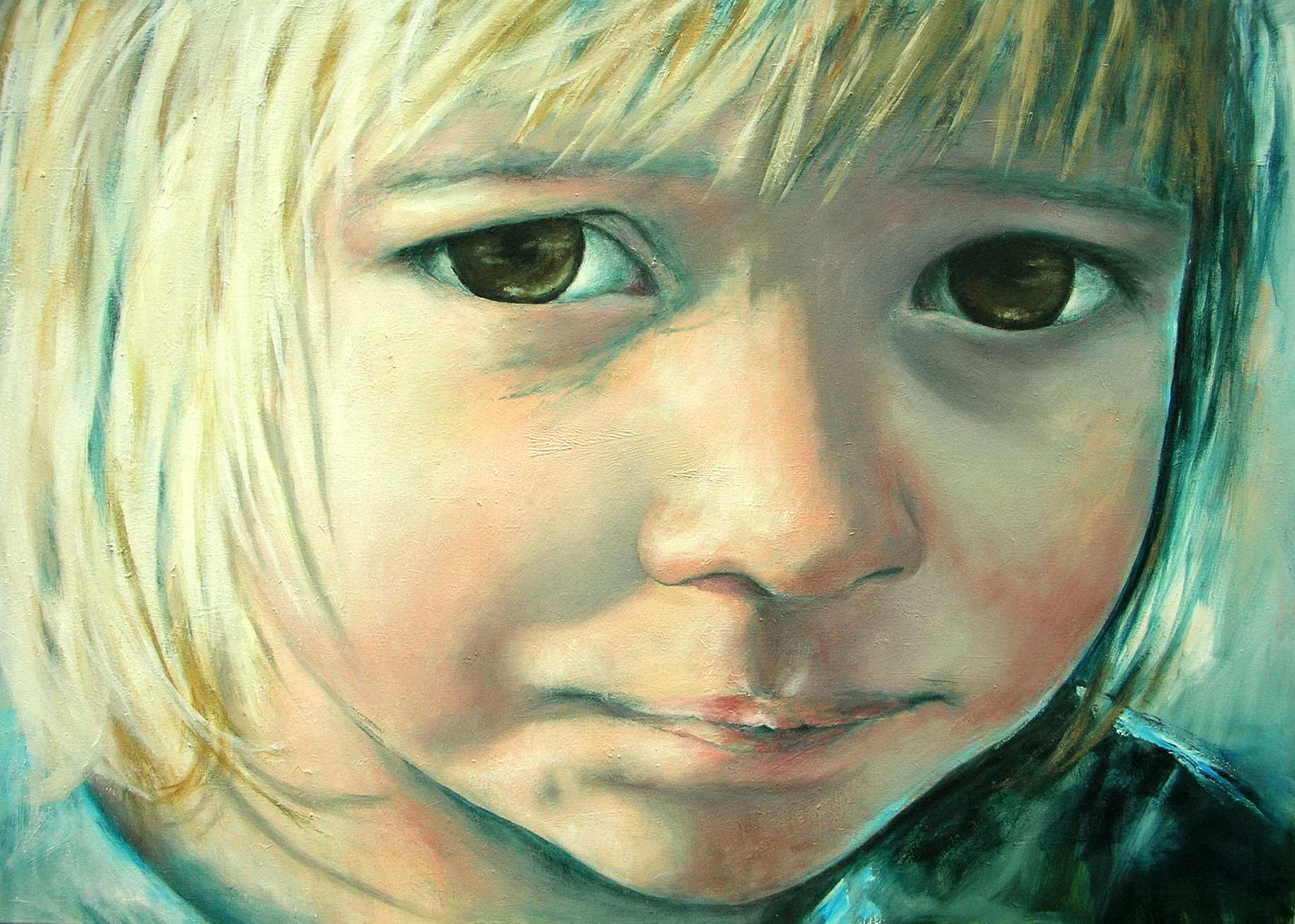 Schilderij Blauw Kind Portret Ogen Groot Jongen Blond Oog Zoon
