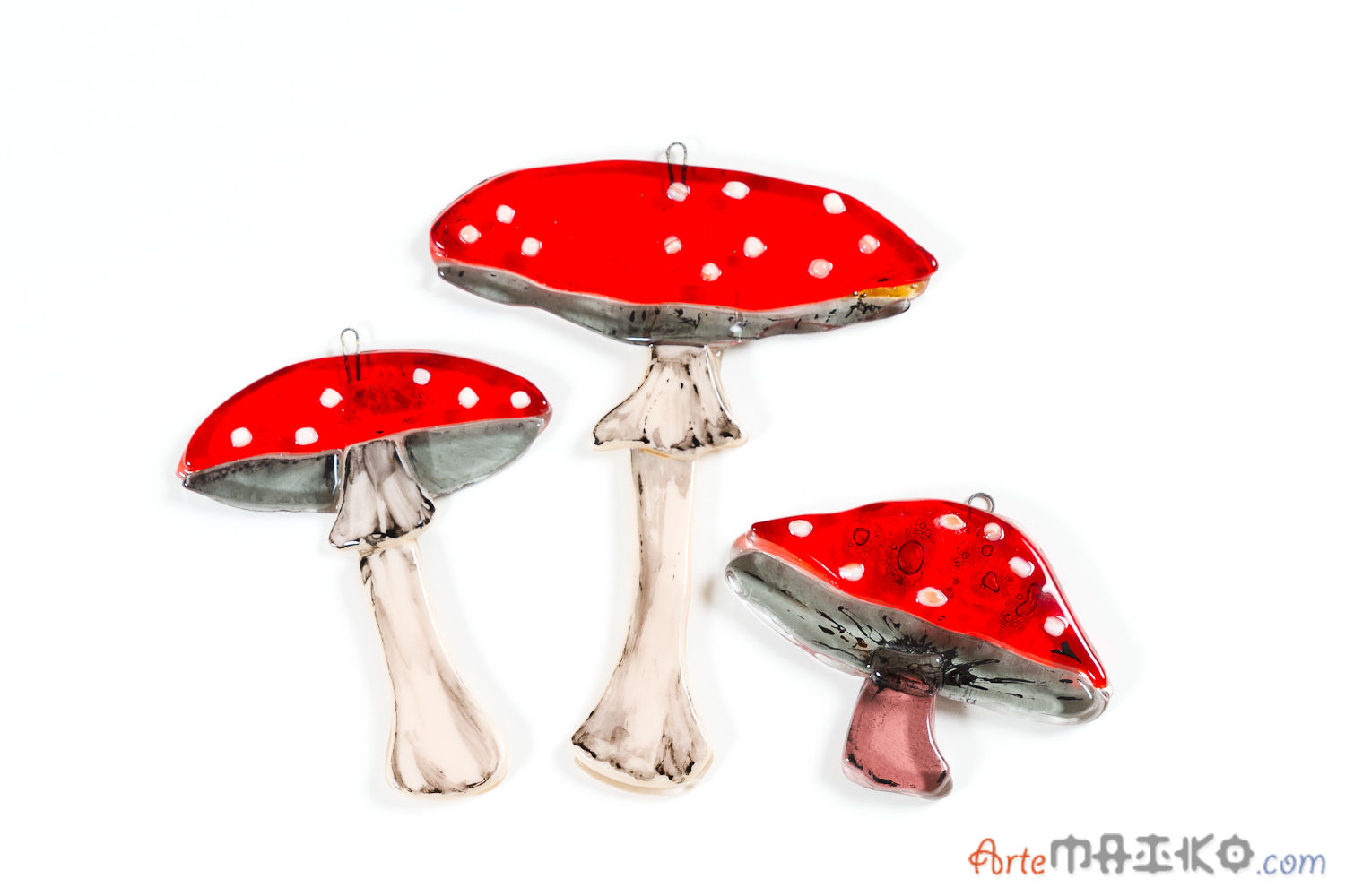 Paddestoelen (vliegenzwammen) in diverse afmetingen op een witte ondergrond. Losse paddestoelen en andere soorten kunnen ook besteld worden. Prijzen zijn afhankelijk van de gewenste afmetingen.