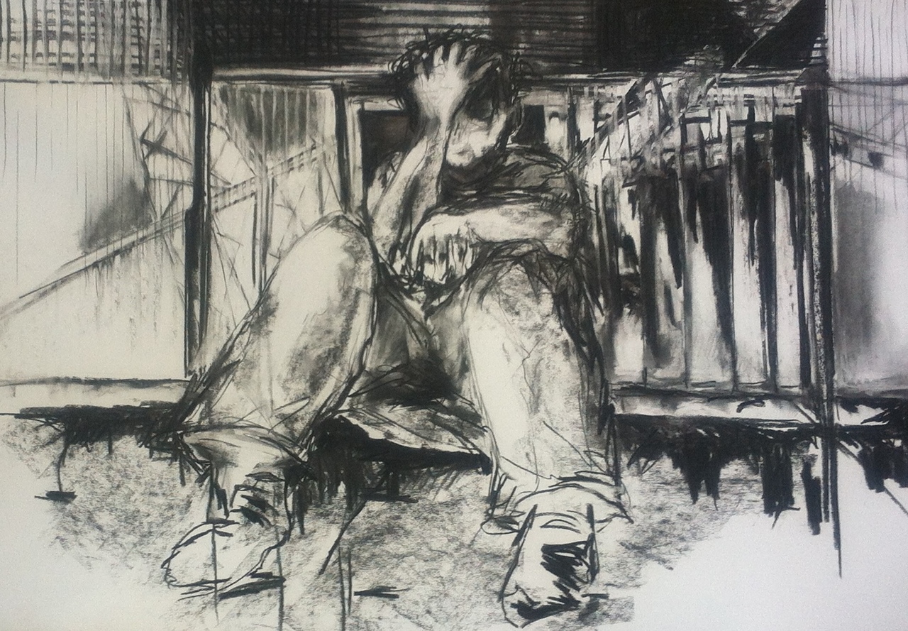 Houtskooltekening geinspireerd door beelden uit een industriele omgeving