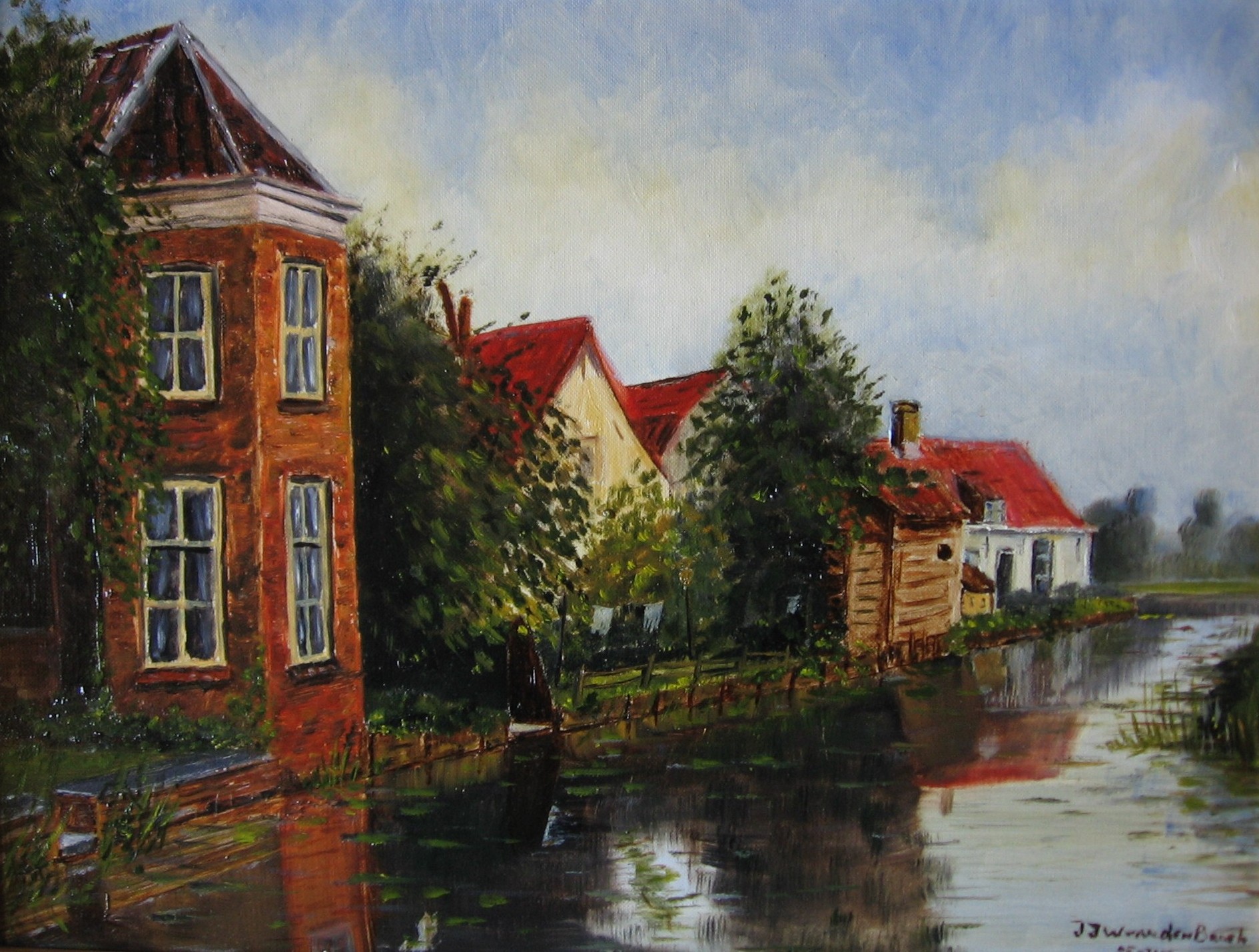 Jan van den Broek (1951), autodidact, schildert landschappen in een naturalistische trant, voornamelijk in Zuid-Holland, Rijswijk en omgeving, evenals in de Périgord en de Limousin (F); sterk geïnspireerd door de Haagse School en met name door het werk van zijn grootvader Jacob Lucas Jongsma (1893-1926), zie Schilderslexicon P. Scheen. [PG]