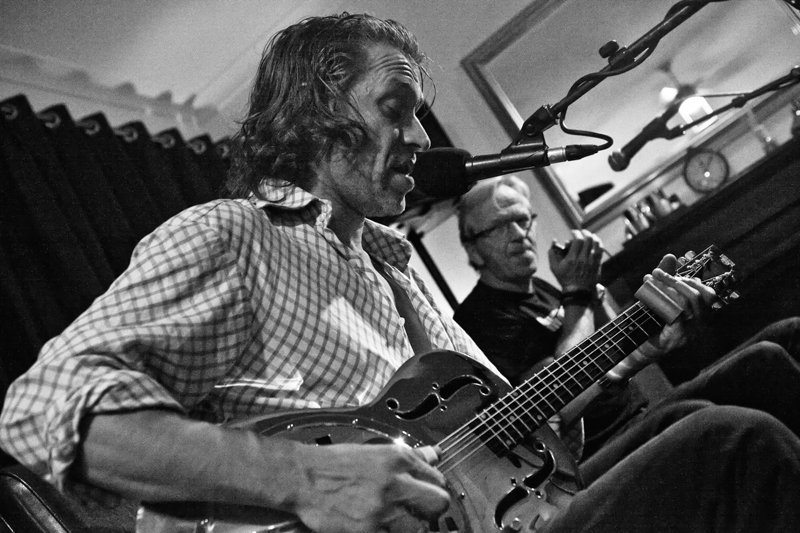 The two-man blues band played in a living room. Just vocals, guitar and harmonica. As a photographer, this was enlighting: made with ISO 12,500 !