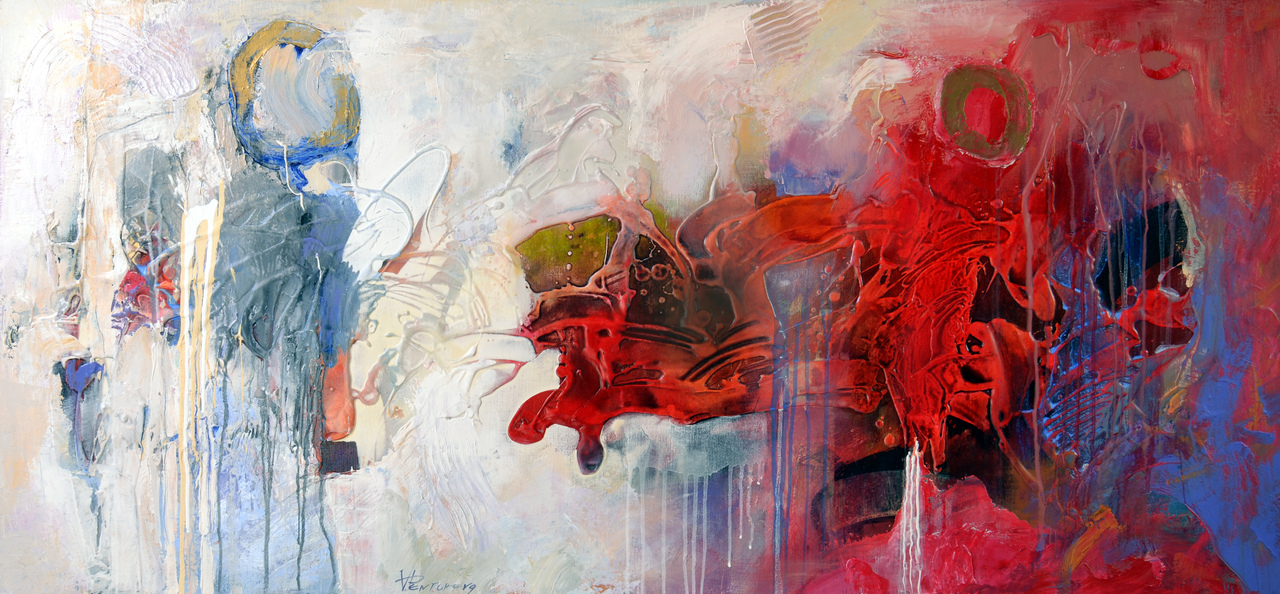 Mijn abstracte werk is een weerspiegeling van observaties en emoties die tot uitdrukking komen in kleuren, vormen en composities.