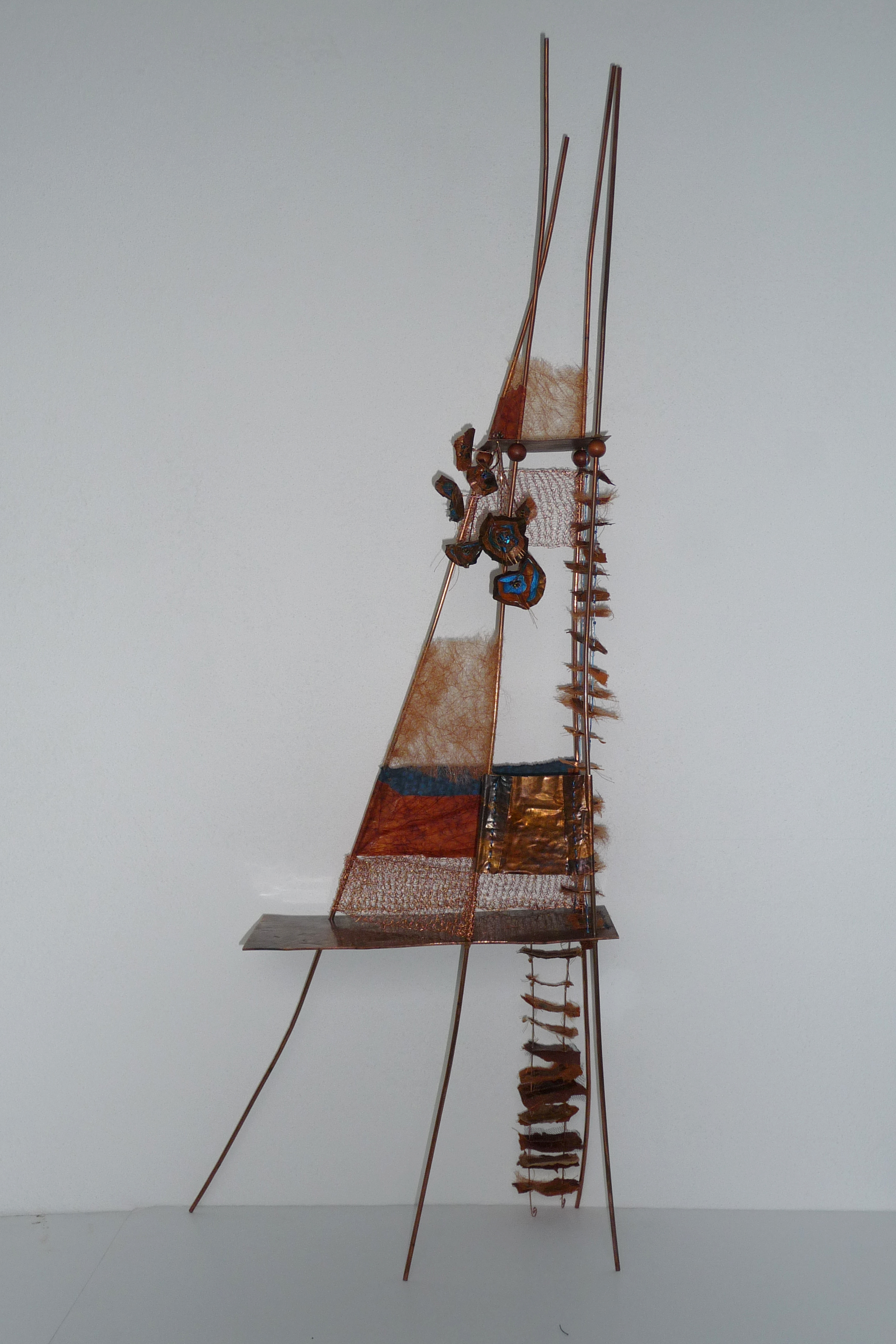 Deze uitkijktoren is een typisch voorbeeld van hoe ik mijn passie -textiel-, verwerk in 3D objecten. Koperplaat - latoenkoper - textiel - koperdraad - polyestervlies - tyvek.