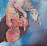 Het rondhuppelen van een lam in de wei is vertederend, maar ik vind het moment dat alles nog slijmerig, vies en kwetsbaar is fascinerend en mooi. Ik zoek..naar de ontmoeting tussen menselijke en dierlijke intimiteit Ik wil maken, een mooie maar ook confronterende naakte echtheid laten zien. Ik zoek..Het ongrijpbare van een levend wezen. Met stof, pur en siliconenkit leg ik verbanden tussen de zichtbare, naakte werkelijkheid en de verborgen wereld van mijn complexe gevoelens en emoties.